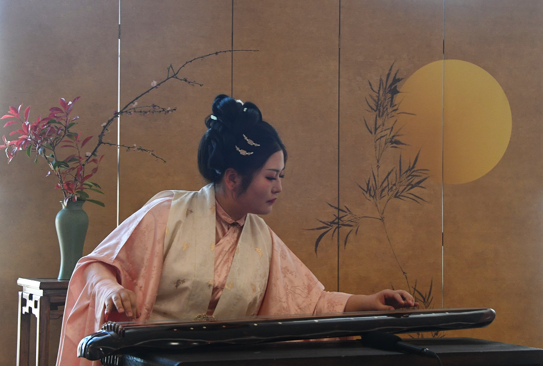 高山流水觅知音。古琴艺术家范玉欣演奏的《流水》,让在场人士感受到“巍巍乎志在高山,洋洋乎志在流水”的气度。笙表演艺术家王霄华演奏的《鹿鸣》,取自《诗经·小雅》首篇,是招待重要贵宾的燕乐。在《送别》的悠扬的曲调中,大家细细感受“晚风拂柳笛声残,夕阳山外山”的苍茫意境。《神人畅》《鹤鸣九皋》《雨霖铃》等演奏,蕴含高妙意境,让人彷佛进入到一场音画交织的天地对话,引导听众于喧嚣中寻找内心澄净。两位艺术家联袂演出了一首。雅集将古琴音乐与茶道、香道相结合,整个表演过程中,香道孙芳在旁焚香助兴,为听众打造了一次全方位的古典艺术身心之旅。