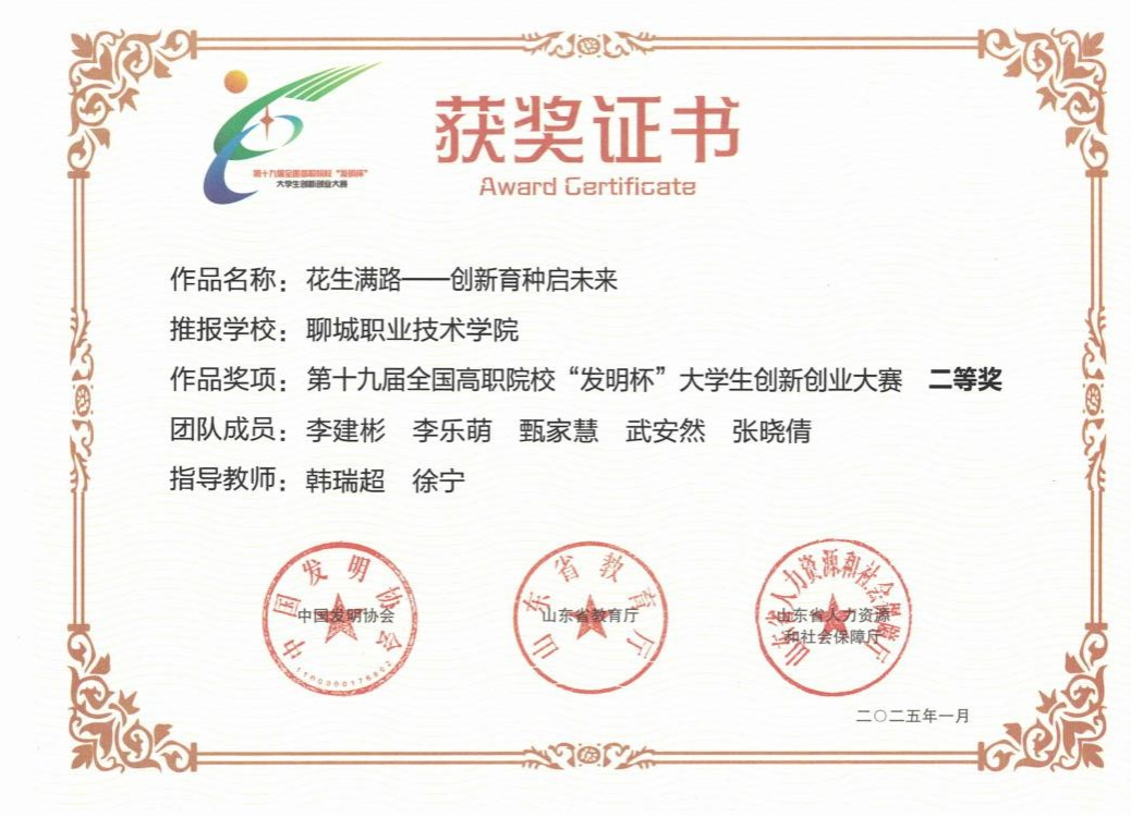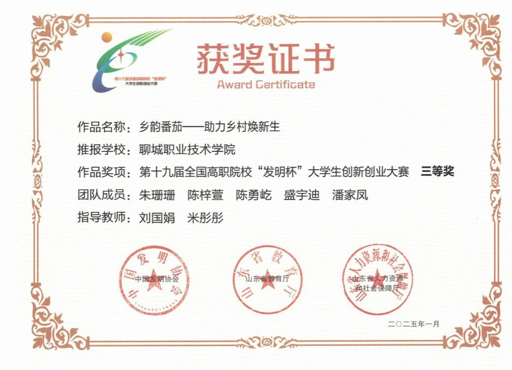近日,第十九届全国高职院校“发明杯”大学生创新创业大赛圆满落幕,聊城职业技术学院“花生满路——创新育种启未来”、“乡韵番茄——助力乡村焕新生”两个项目分别获二、三等奖。该赛事由中国发明协会、山东省教育厅、山东省人力资源和社会保障厅主办,旨在以创新实践培养高素质技术技能人才。