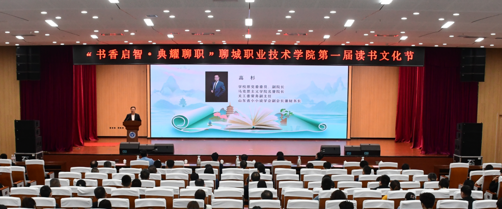 在第30个“世界读书日”来临之际,4月23日,聊城职业技术学院举办“书香启智·典耀聊职”首届读书文化节。党委副书记、院长徐龙海,党委委员、副院长李继峰,党委委员、副院长刘雪巍,学校原党委委员、副院长、马克思主义学院名誉院长高杉,党委委员、组织部部长孙华祥,山东新华书店集团有限公司聊城分公司教育服务部经理张利军出席开幕式。山东天贺久泰电子科技有限公司、超星集团山东分公司、中国知网、万方数据企业代表、学校各部门负责人、各院部党总支书记、团总支负责人、师生与志愿者代表共500余人参加活动。