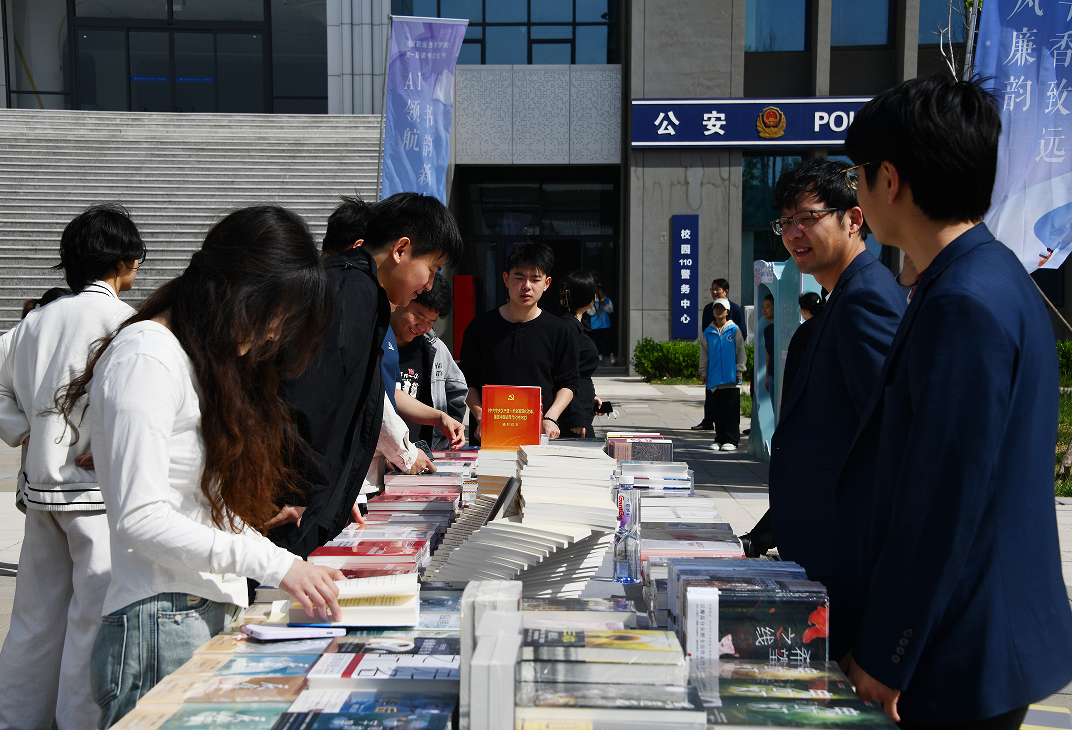 开幕式结束后,与会人员在曦和广场参观了“一院一书”展板、新华书店精品书展、AI数据库智能体验、学生文创作品、宋代点茶等五大展区,融经典传承、非遗技艺、纸书阅读、数字赋能于一体,见证了青春与文化的共舞。
