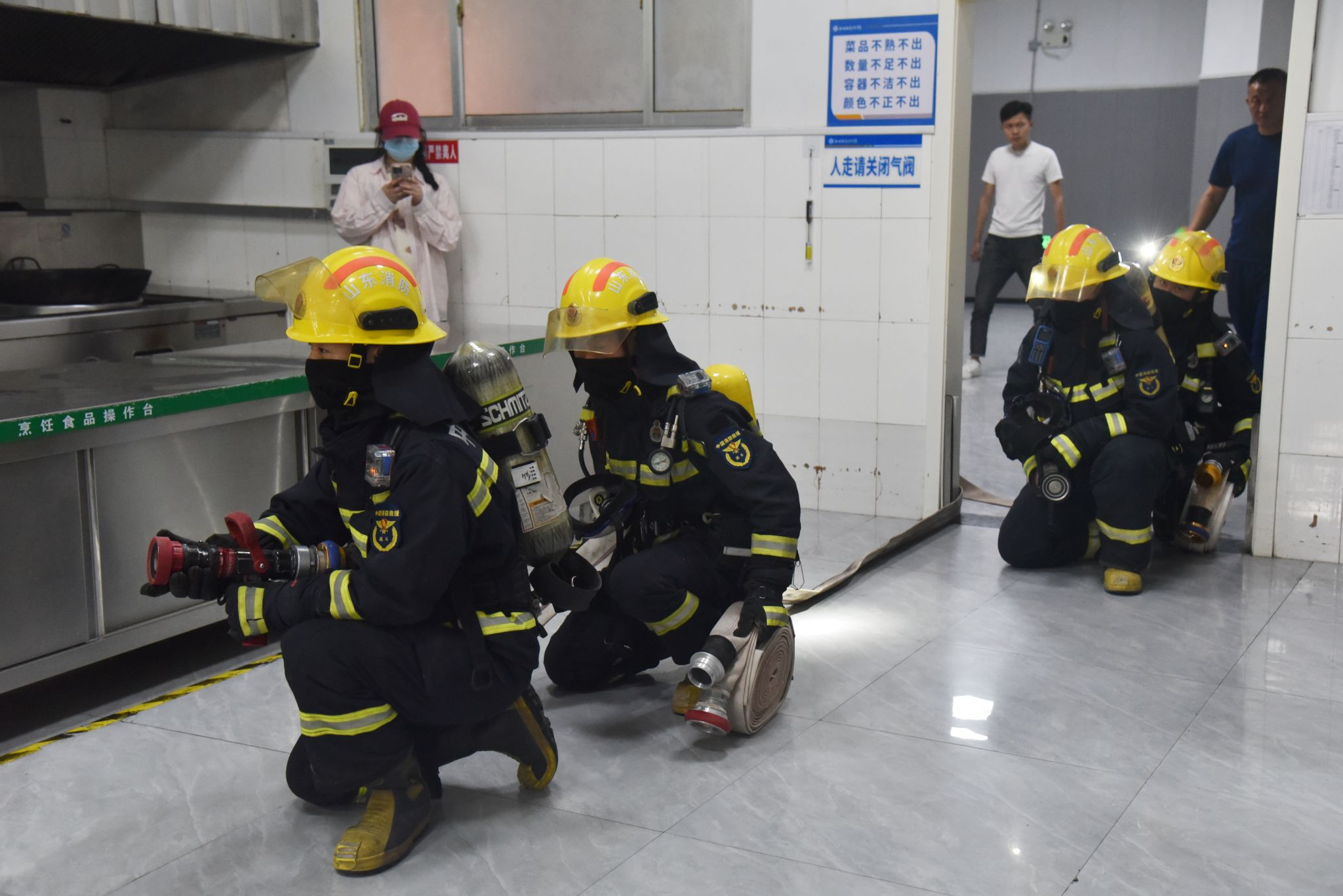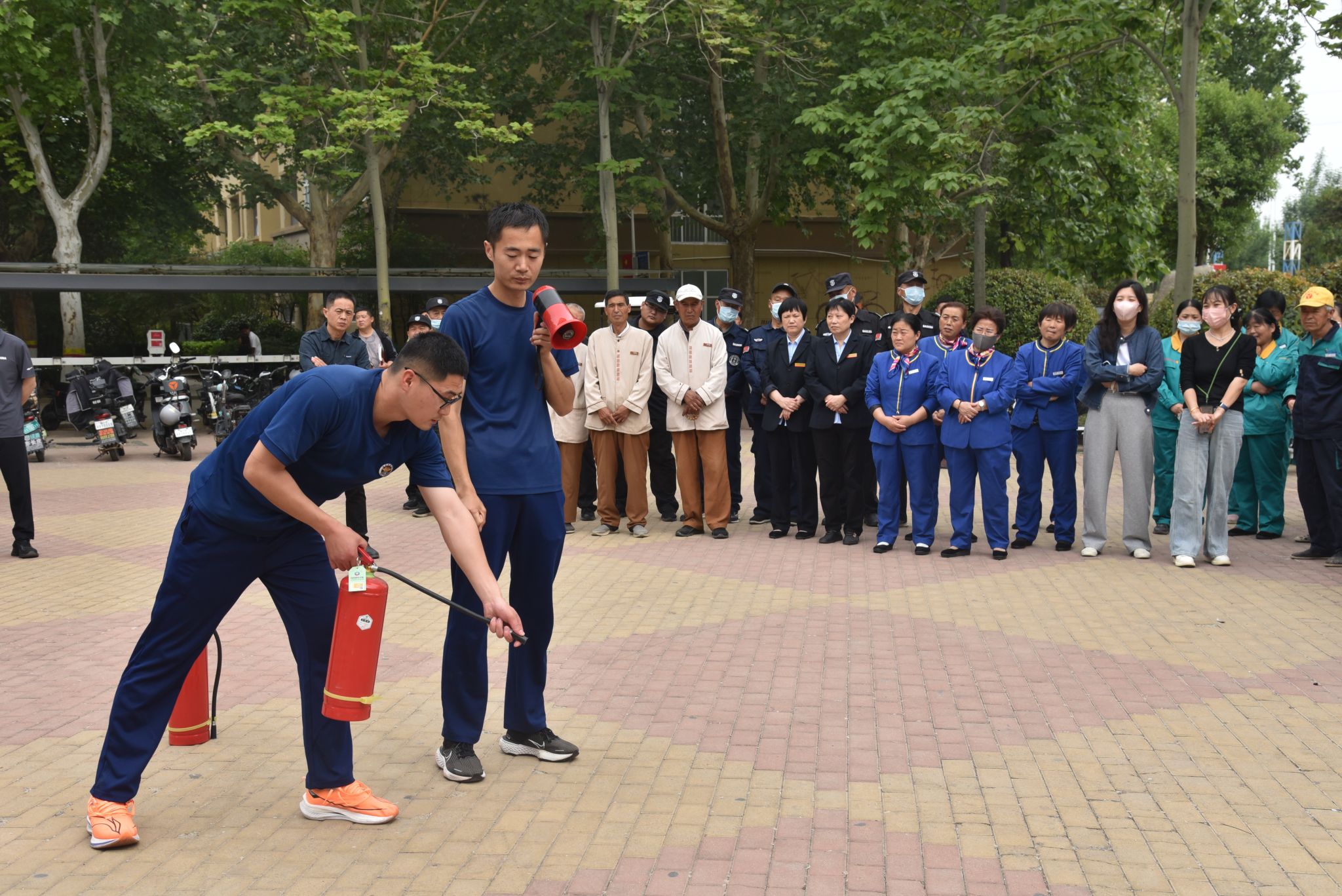 为进一步增强校园从业人员的消防安全意识,提高应急处置能力,为校园安全稳定筑牢防线,5月8日,聊城职业技术学院邀请聊城市东昌府区新区消防救援站消防员来校组织开展校园消防安全培训演练活动,学校餐厅、物业、保安从业人员共计300余人员参加培训。