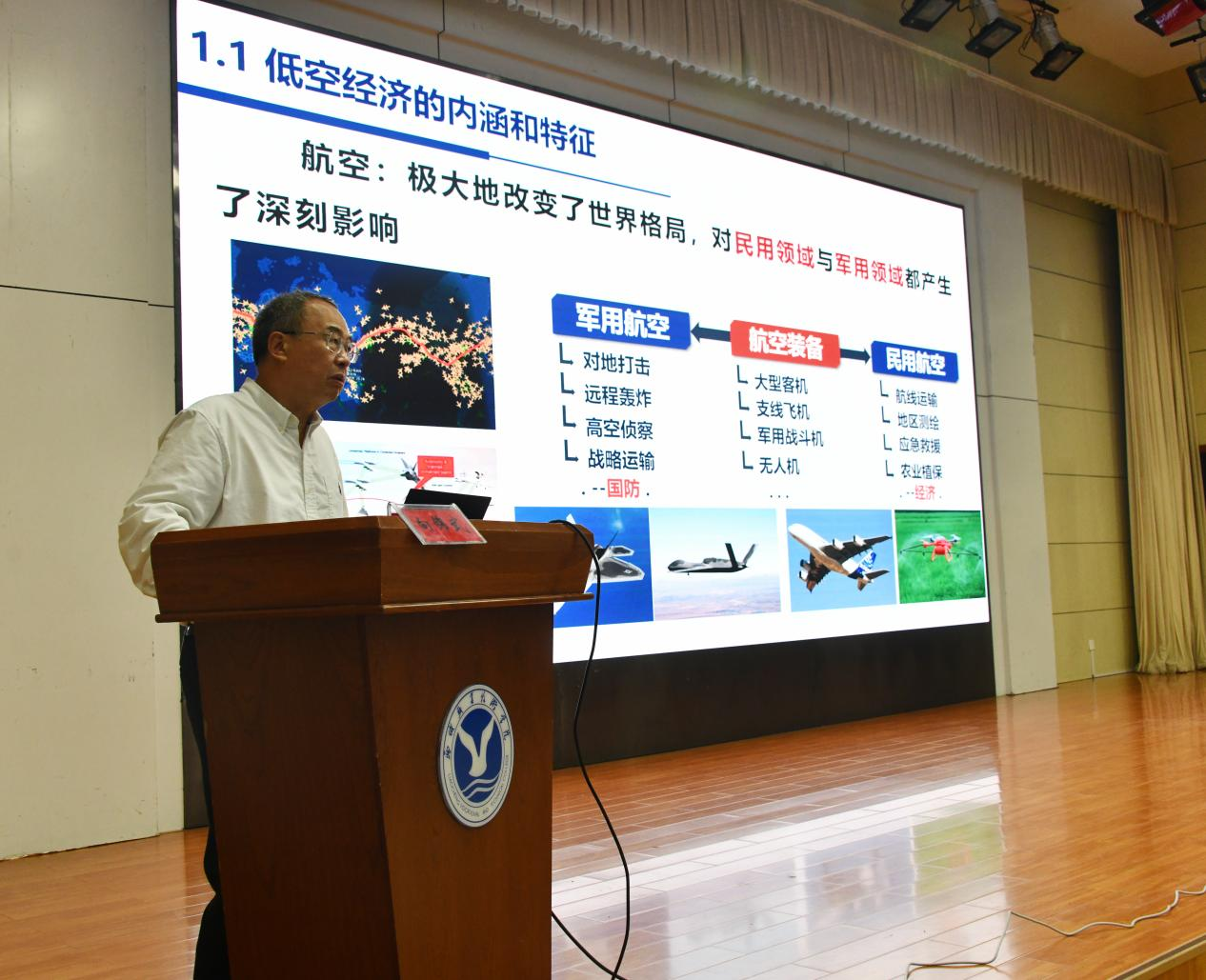 为深化产教融合,服务国家低空经济战略布局,5月15日,北京航空航天大学教授、博士生导师向锦武应邀莅临我校,围绕“低空经济及其装备技术”作专题讲座。党委副书记、院长徐龙海,高绪斌、崔爱民、孙华祥等校领导班子成员出席,中国专家科技经济咨询中心总经理边宏伟参加了讲座。