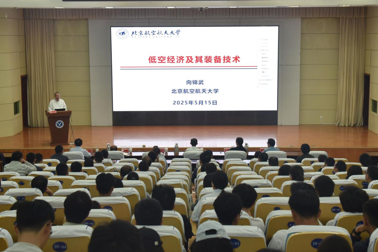 向锦武教授首先着眼于低空经济基本概念,阐述了低空经济的内涵和特征,并介绍了低空经济的典型应用场景;然后聚焦低空经济装备技术,重点介绍了智能化飞行平台、任务载荷、测控与信息传输、安全性设计、智慧空域管理等关键技术;他还从多角度出发,提出了低空经济未来发展的建议和举措,为全体师生代表带来一场思想盛宴。