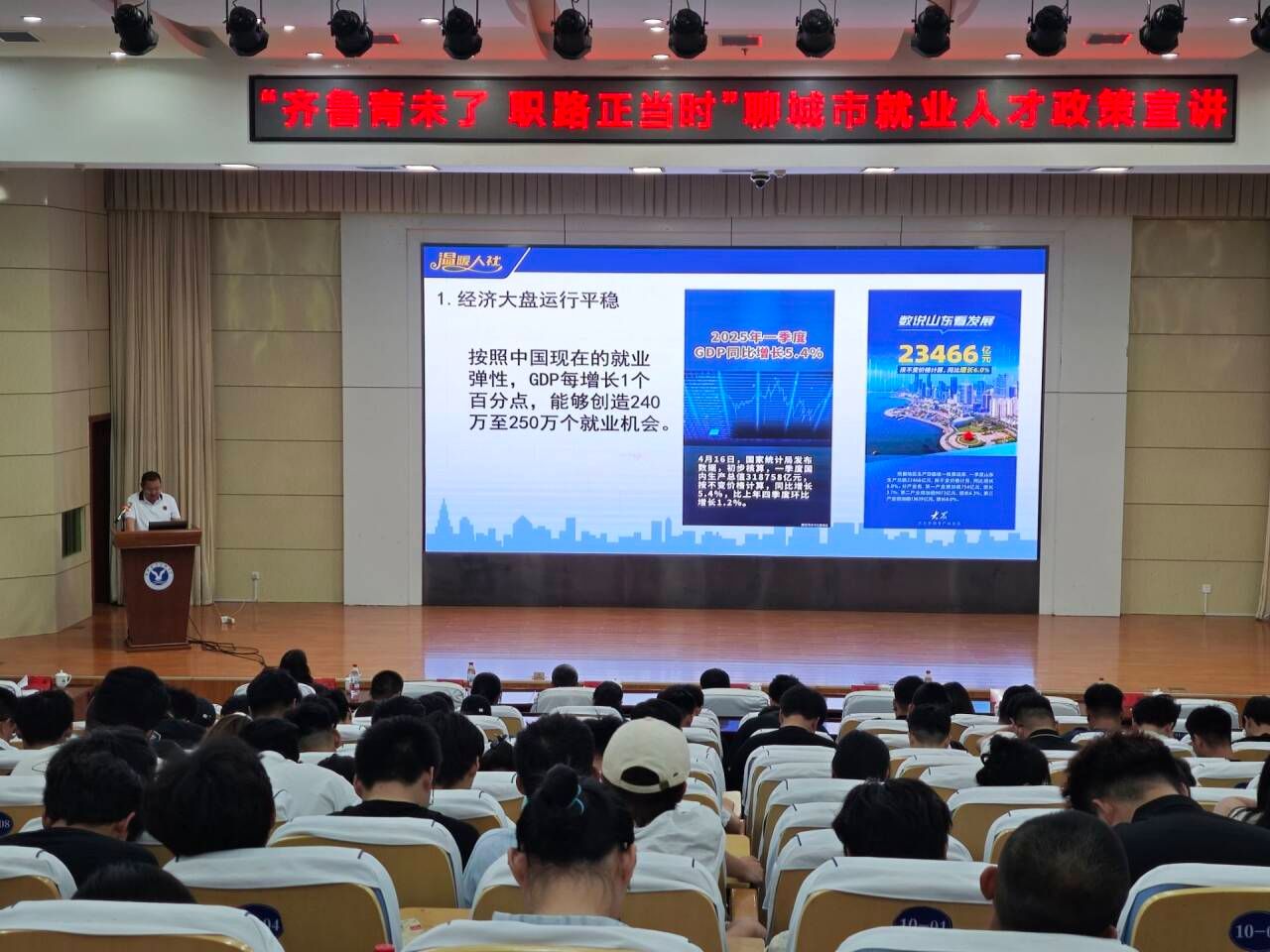 5月20日,聊城市人力资源社会保障局与聊城职业技术学院联合举办“齐鲁青未了 职路正当时”大学生就业指导宣讲活动。活动聚焦职业规划、政策解读、经验分享与创业实践,为400余名师生提供了一场“就业育人”主题宣讲。