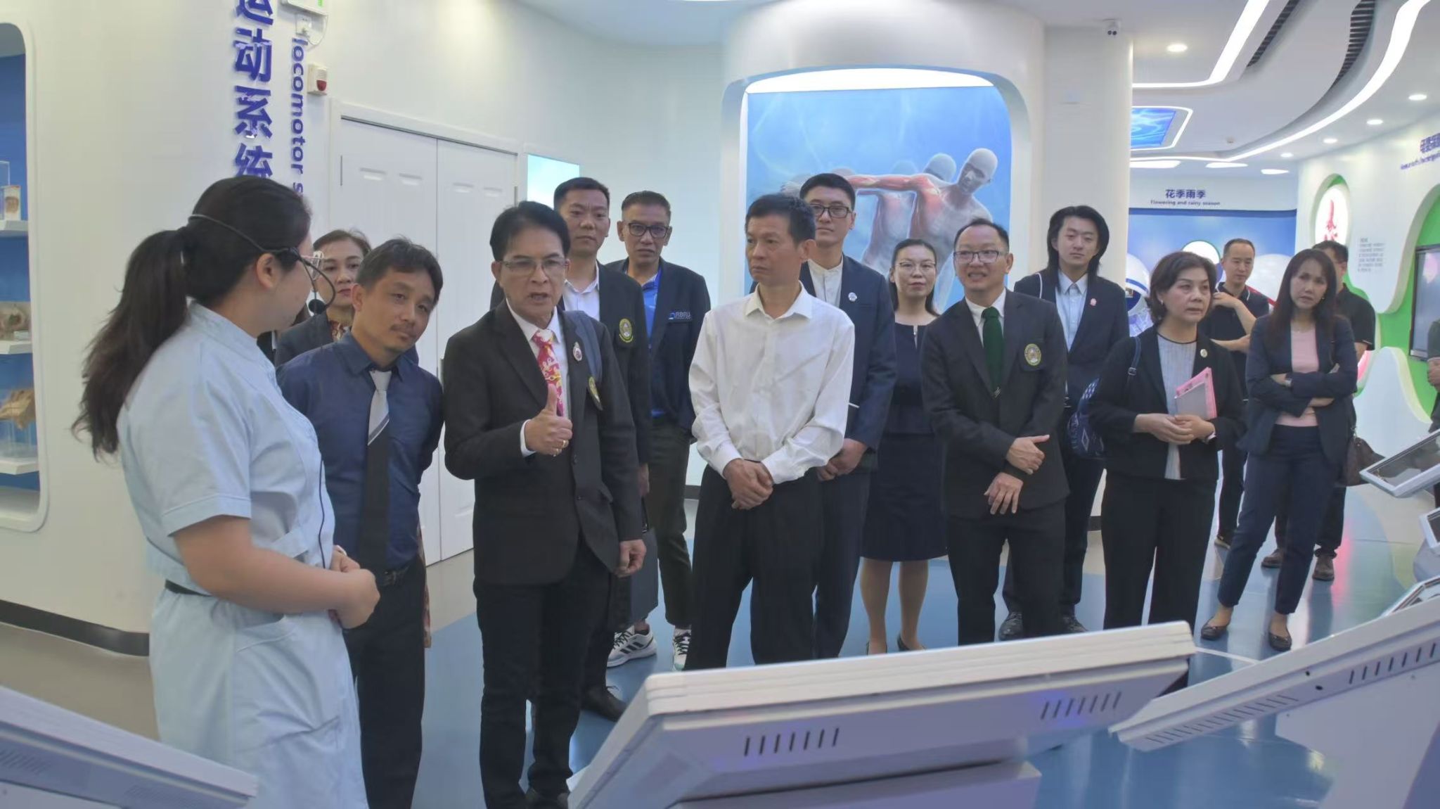 西纳·考斯蓝南(Sinat Koslanant)对学校的热情接待表示感谢,并介绍了兰帕潘尼皇家大学的学科优势及国际合作经验。他表示,两校在护理、科技、经贸等领域具有广阔的合作空间,期待双方共同推动短期访学、学分互认、职业技能培训等合作项目落地实施。
