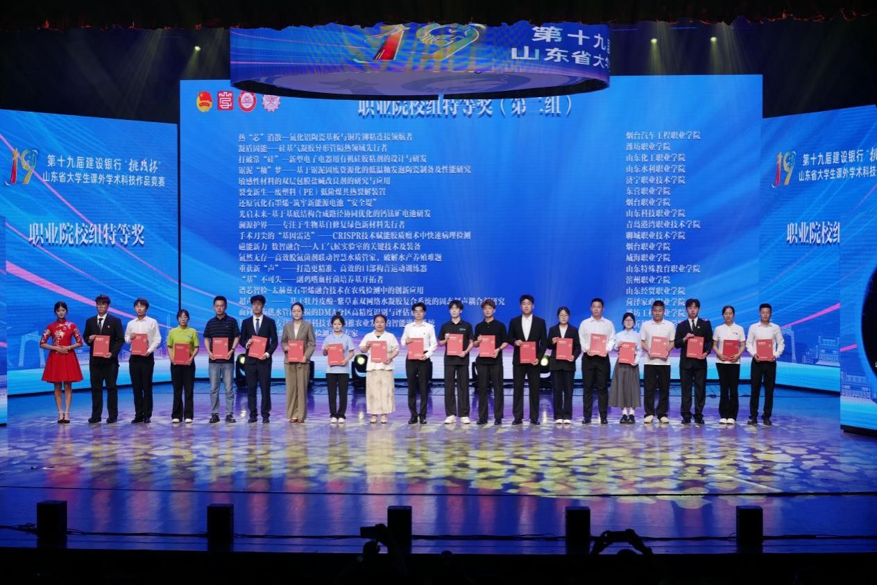 近日,由共青团山东省委、山东省科学技术协会、山东省教育厅、山东省科技厅、山东社会科学院、山东省学生联合会共同主办,临沂大学、山东科技职业学院承办,中国建设银行山东省分行冠名支持的第十九届“挑战杯”山东省大学生课外学术科技作品竞赛在山东科技职业学院举行。聊城职业技术学院参赛作品共斩获特等奖1项、一等奖8项、二等奖5项,总成绩积分位列全省职业院校第6名,学校再次捧得“优胜杯”。