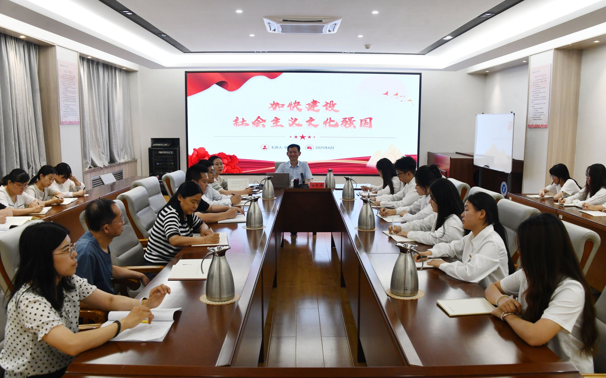 6月13日,党委副书记、院长徐龙海以“加快建设社会主义文化强国”为主题,为医药学院师生讲授形势与政策课。助力医药学子理解和把握中华优秀传统文化的时代价值,筑牢文化自信根基,明确新时代青年的文化使命与担当。