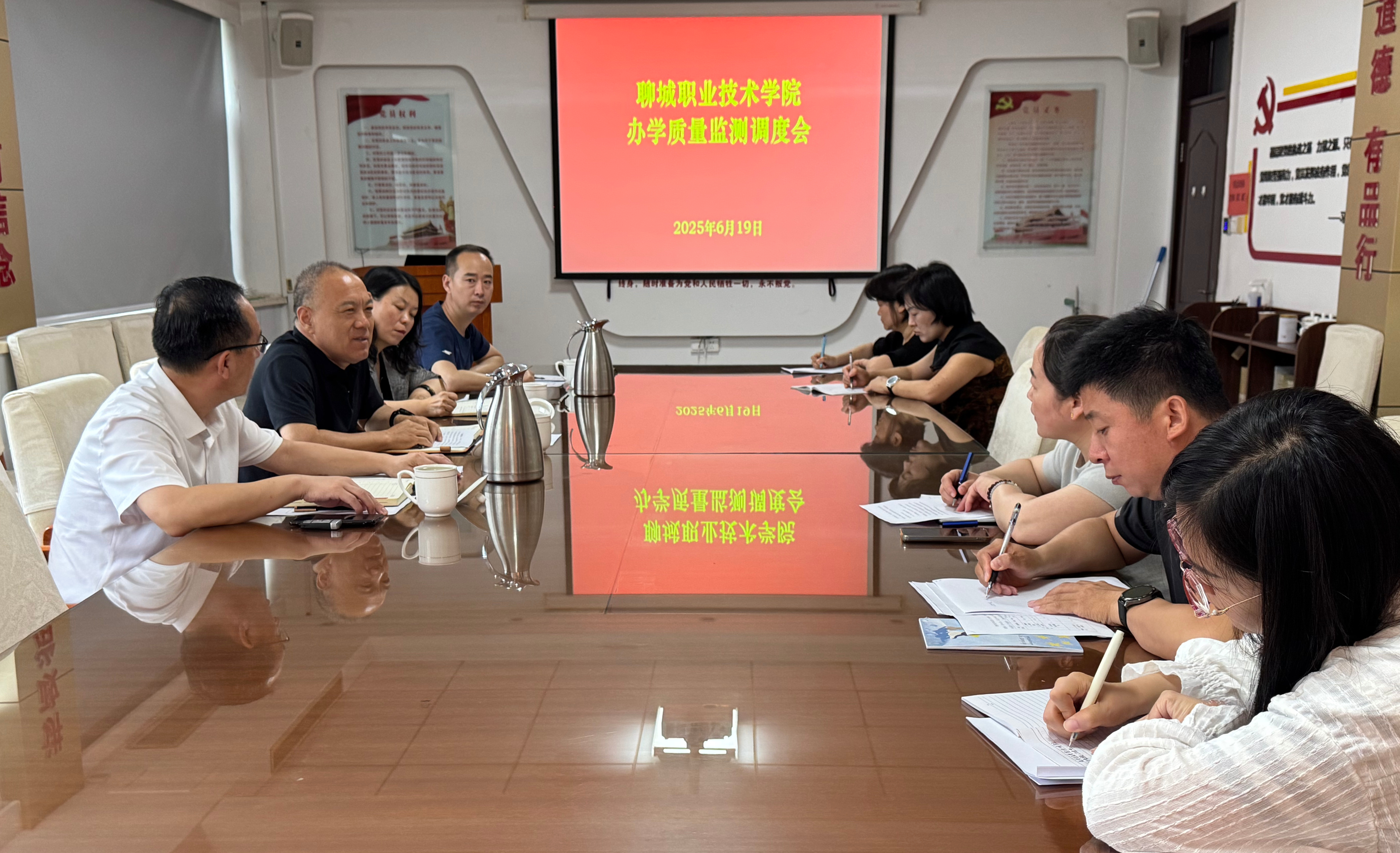 6月19日,聊城职业技术学院召开办学质量监测工作调度会。党委委员、副院长许广元,党委委员、组织部部长孙华祥,党委委员、宣传部部长卢萍参加会议。会议由质量管理处负责人主持。