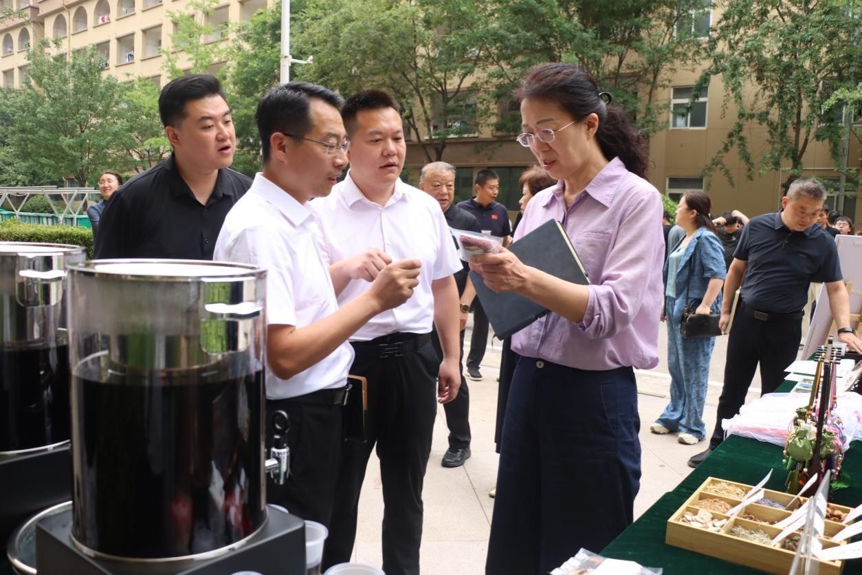 活动第一阶段,刘雪巍一行来到医药学院宿舍违禁品展示区、中医药产品成果展示区,观看了中草药香囊、艾灸锤、合香珠手串等文创产品,品尝了中医药绛紫生津饮。随后,现场参观了百草苑“一站式”学生社区之医药学院学生党支部工作室暨入党积极分子“红蕾”工作室、心灵驿站暨朋辈心理辅导站、宿舍楼宇文化等建设情况,深入了解社区功能划分、社区空间打造、社区活动开展情况与社区建设成果。
