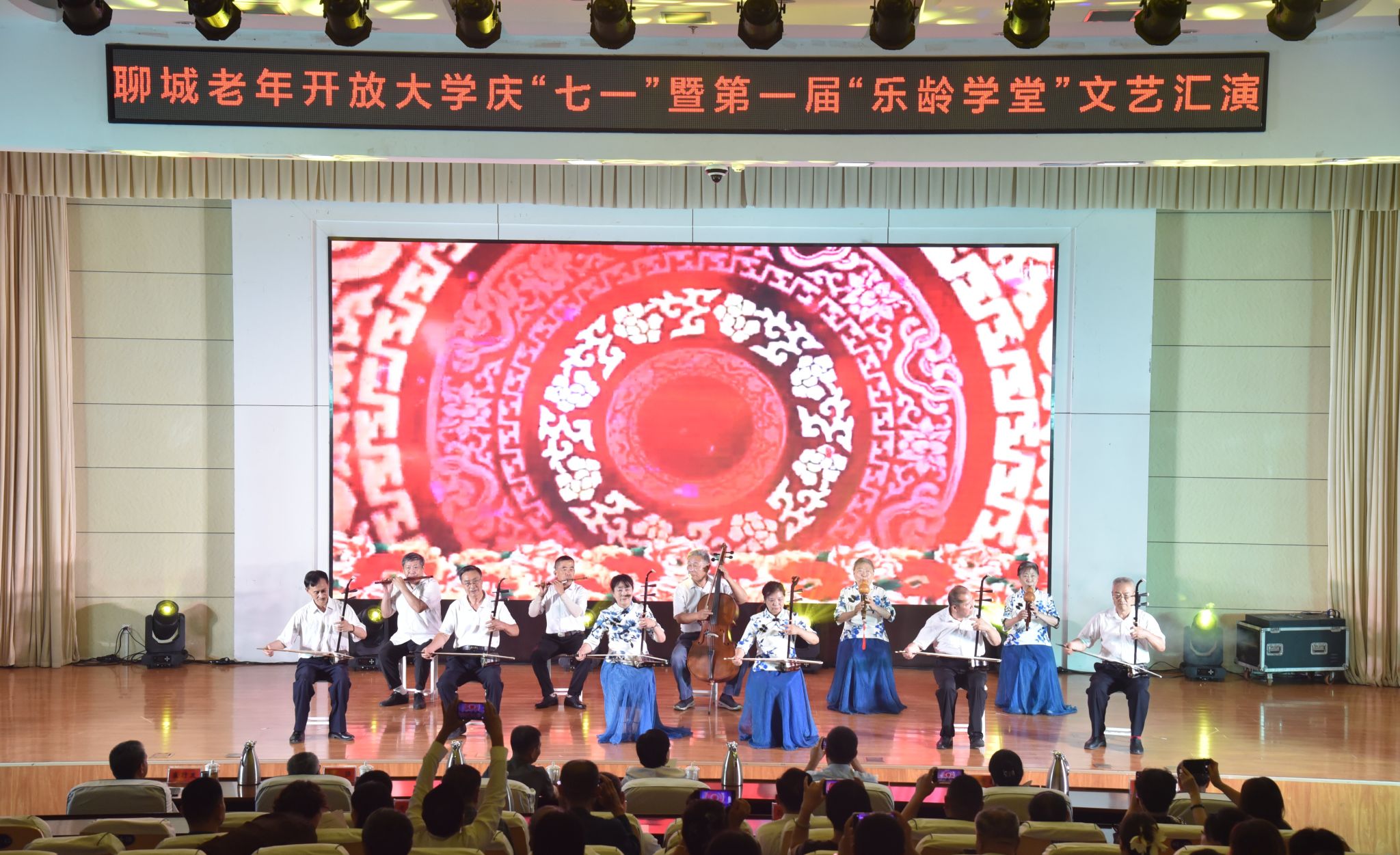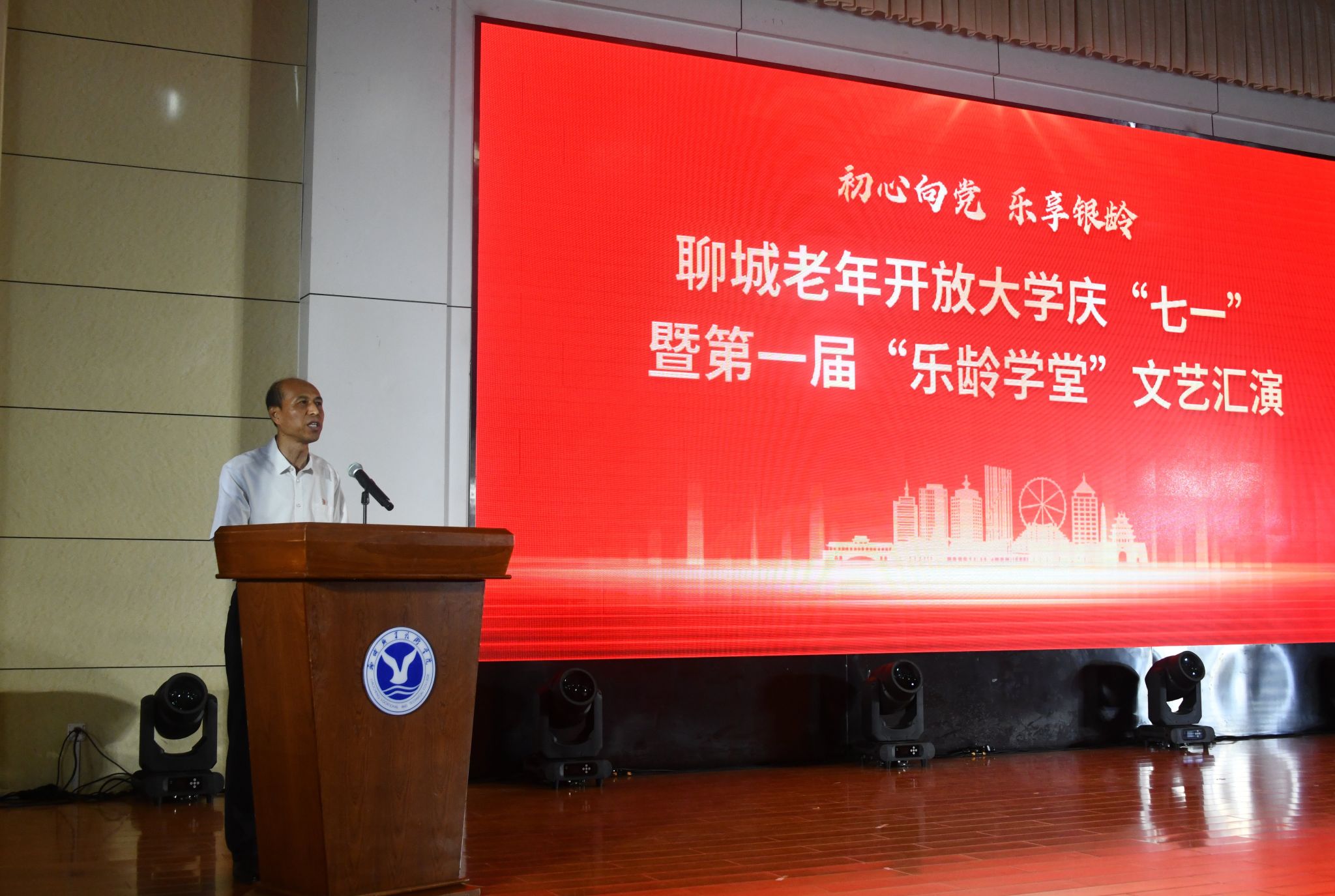 6月30日,由聊城职业技术学院主办,聊城老年开放大学承办的庆“七一”暨第一届“乐龄学堂”文艺汇演在学校图书馆报告厅举办。