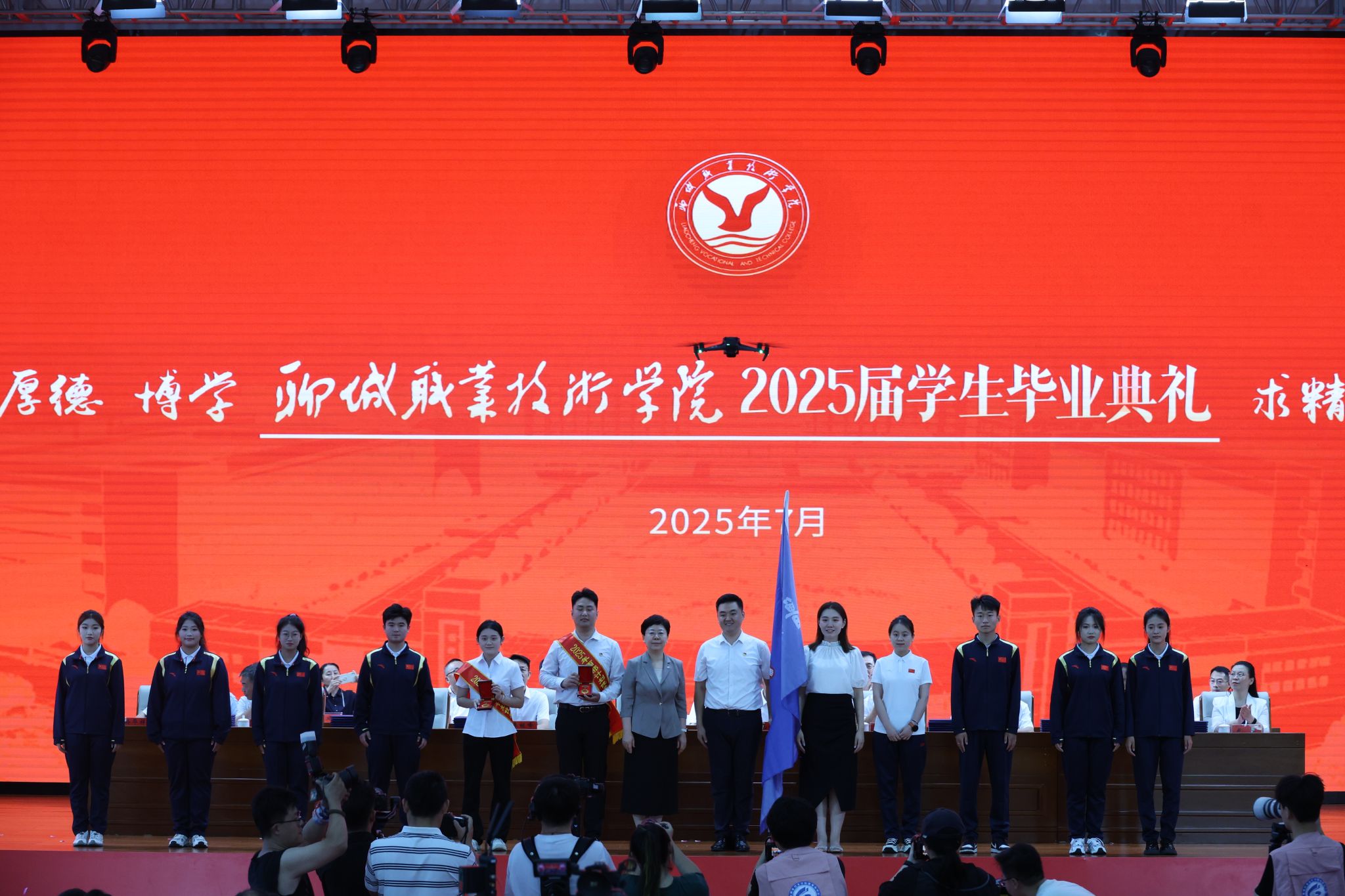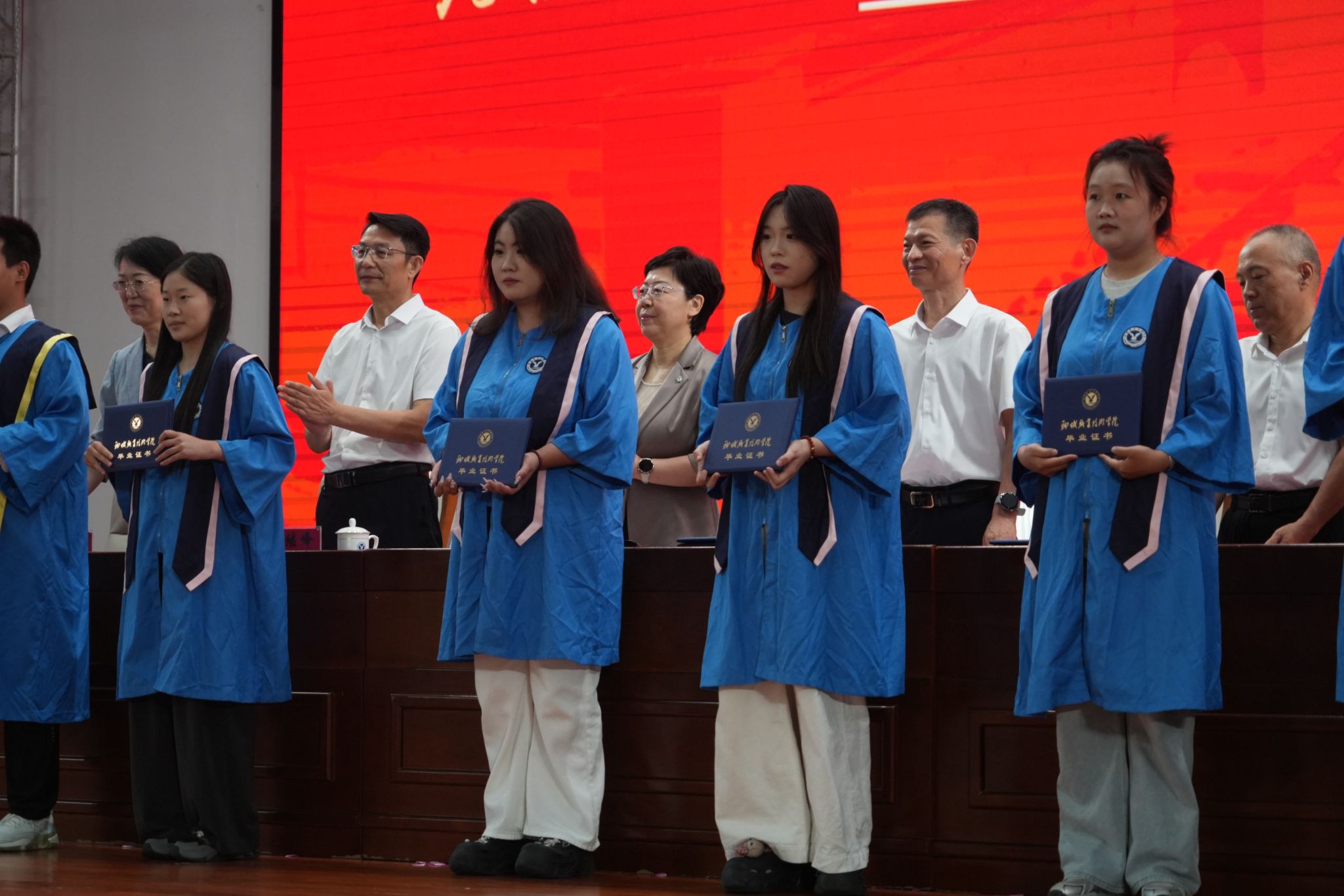 随后,现场1000名毕业生代表依次走上主席台领取毕业证书,一纸证书,承载着毕业生们三年寒窗苦读的汗水,凝聚着老师们的辛勤教导的心血,也标志着2025届毕业生在聊职学业的圆满收官,更是开启人生新篇章的通行证。