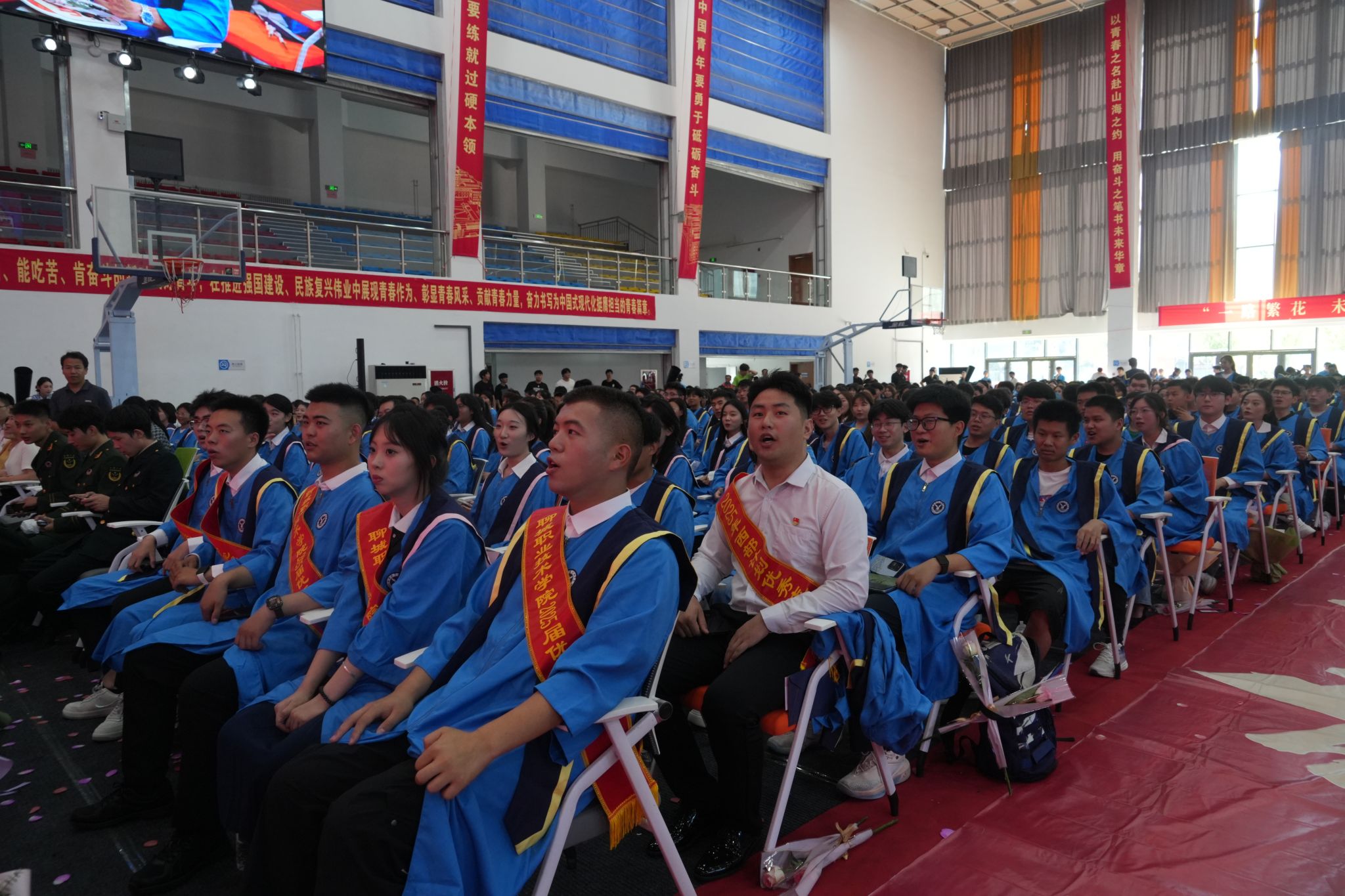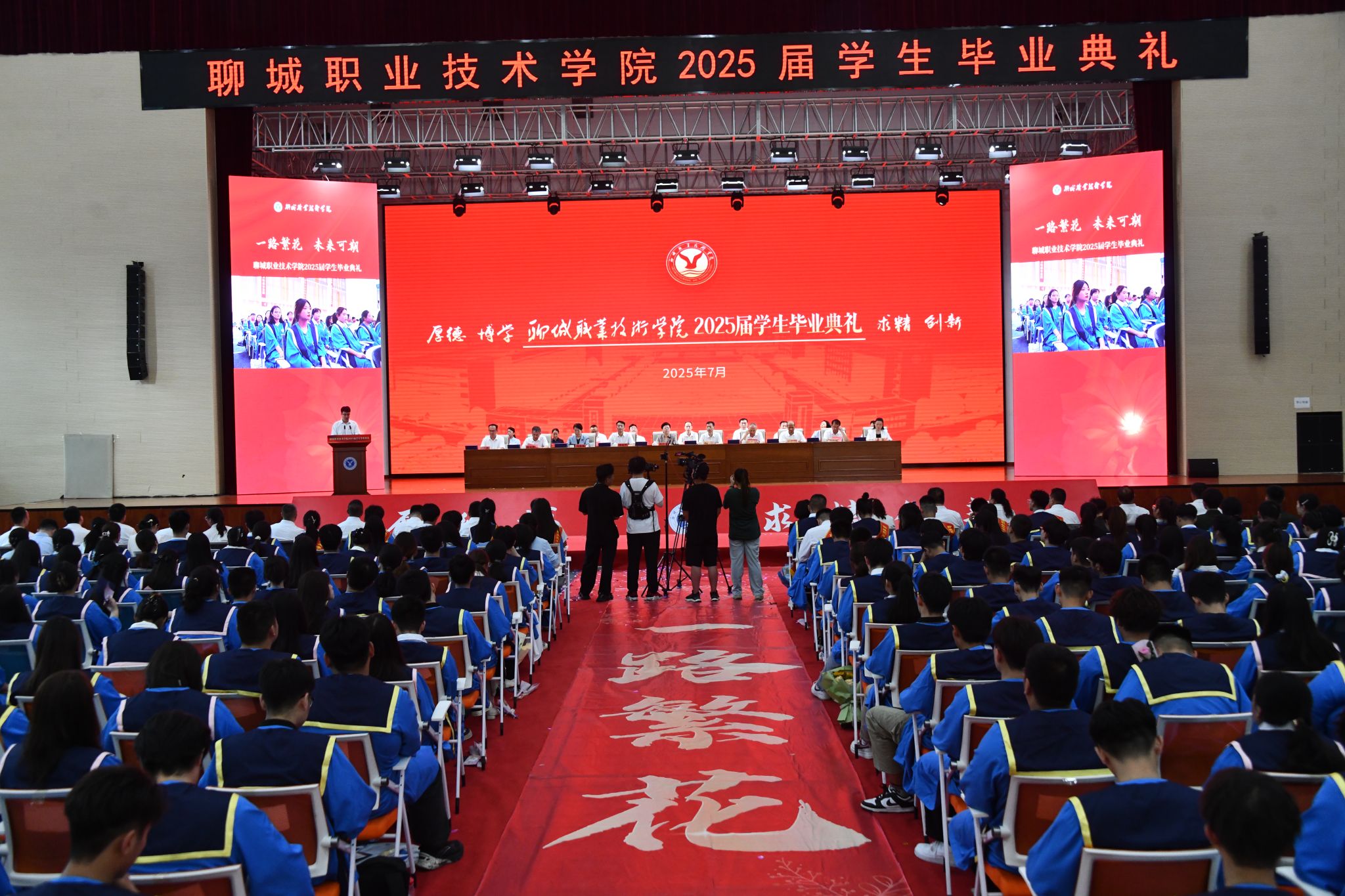夏日的聊职,草木葱茏,骊歌轻响,又是一年毕业季。7月5日,聊城职业技术学院2025届学生毕业典礼在北校区体育馆举行。学校领导班子全体,各二级学院负责人,党团总支负责人,全体毕业班辅导员(班主任),毕业生代表,家长代表共1200余人参加典礼。典礼由党委书记靳凤莲主持。
