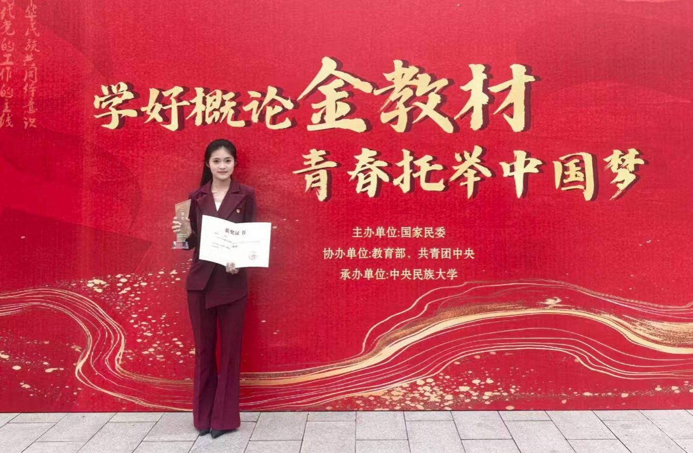 7月15日,由国家民委主办,教育部、共青团中央协办的“学好概论金教材 青春托举中国梦”演讲比赛全国决赛在中央民族大学圆满落幕。聊城职业技术学院学生谭凯月凭借扎实的理论功底、真挚的情感表达和出色的现场表现,在全国众多选手中脱颖而出,荣获第三名,为学校赢得了荣誉。