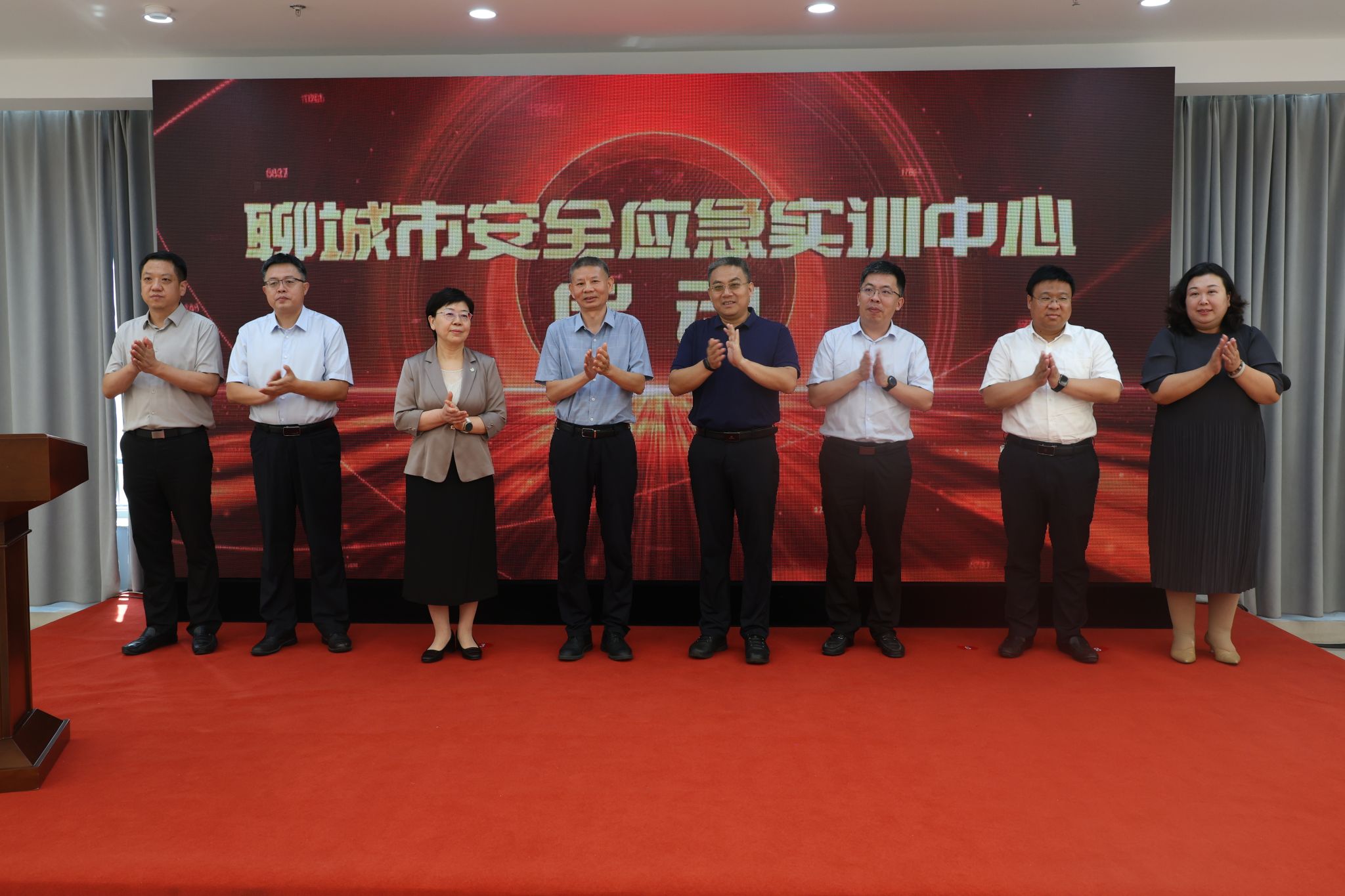 在激动人心的启动环节,应急管理部、应急管理大学(筹)、山东省教育厅、山东省应急管理厅、聊城市教育和体育局、聊城市应急管理局、聊城职业技术学院、青岛海丽雅集团有限公司等部门负责人共同按向大屏,宣告聊城市安全应急实训中心正式启动。