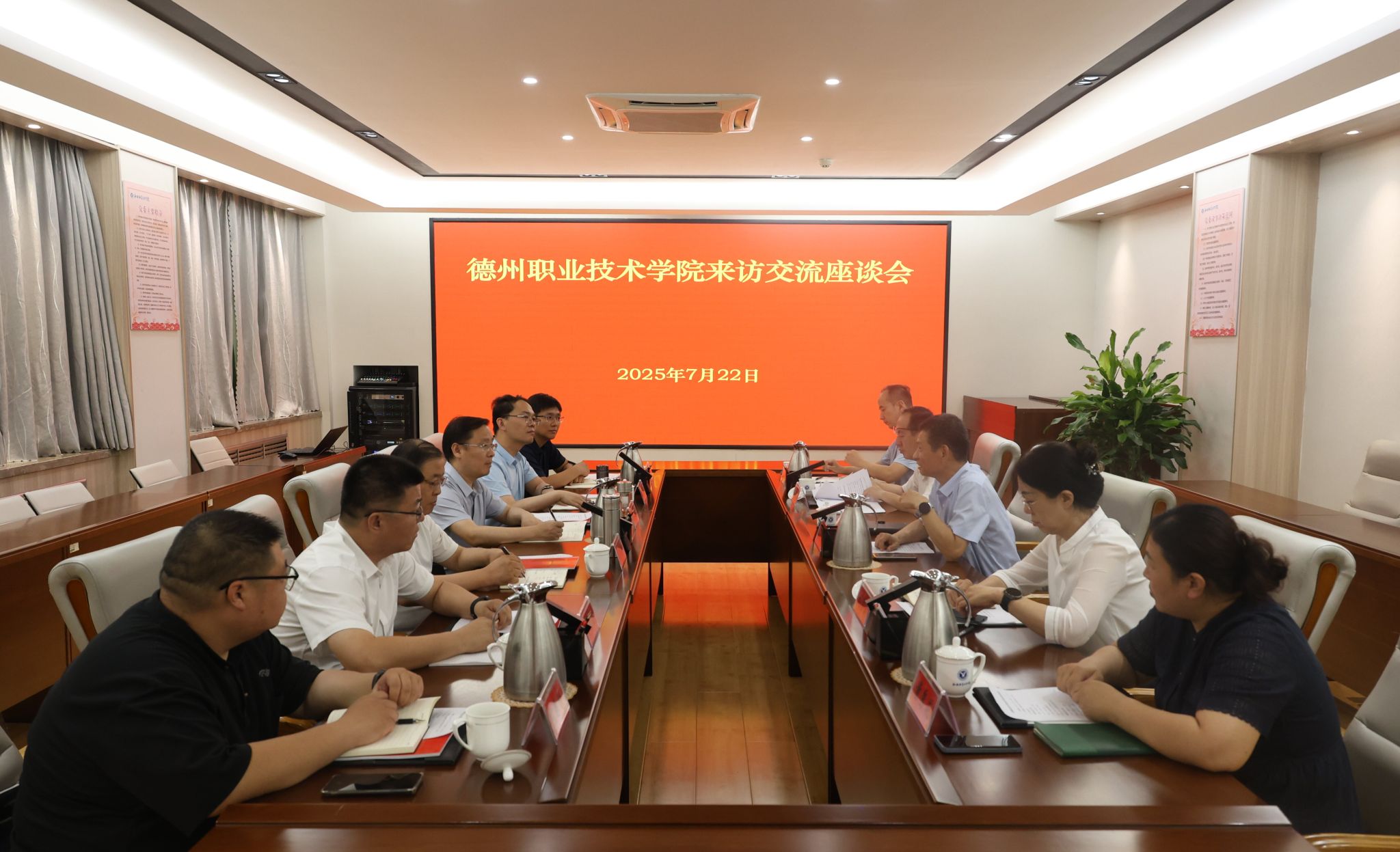 7月22日,德州职业技术学院党委副书记、院长孟繁营一行6人来我校考察学习。党委副书记、院长徐龙海陪同,党委委员、副院长刘雪巍,党委委员、组织部部长孙华祥参加活动。