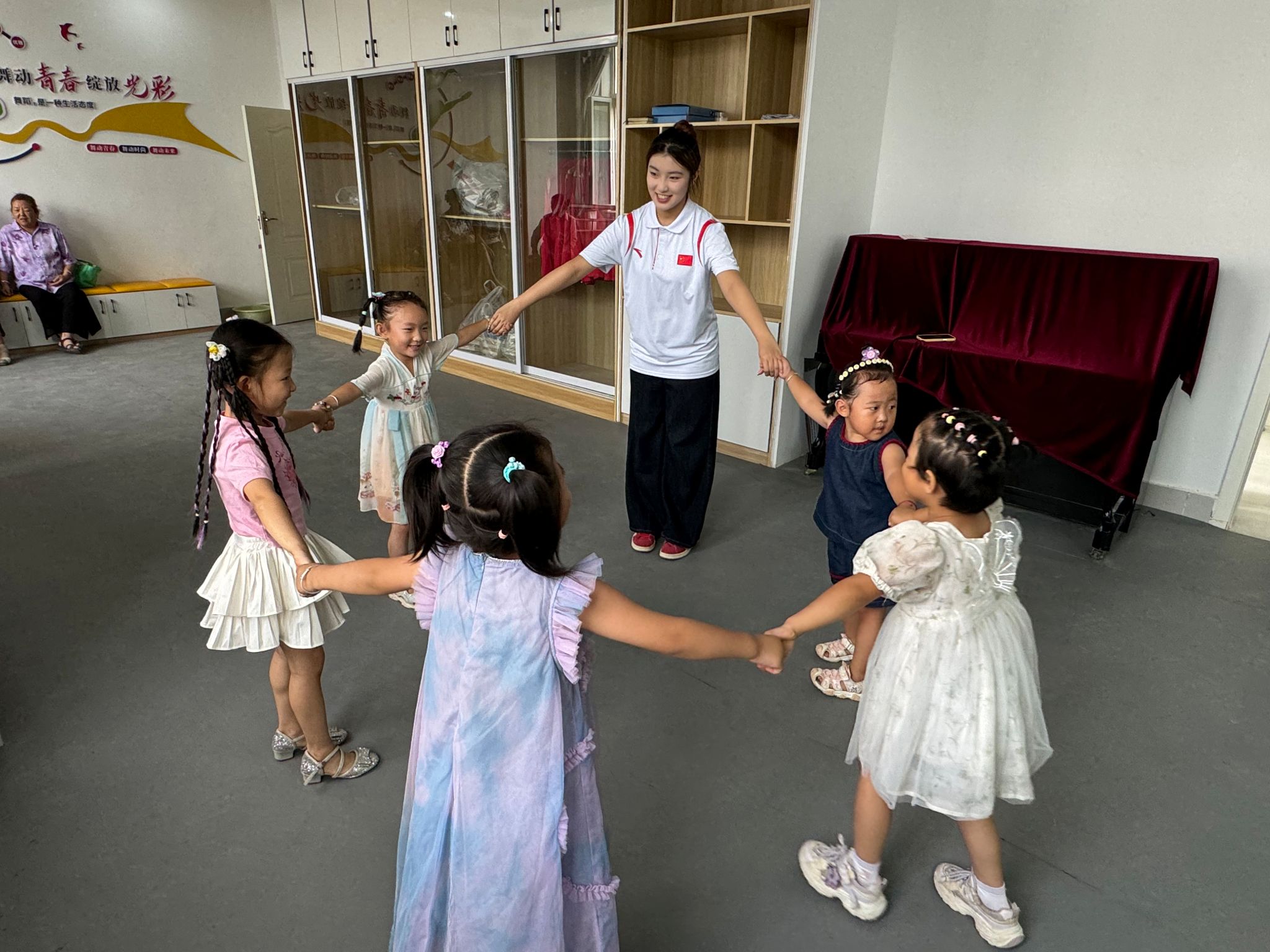 中国舞课堂上,支教志愿者以优美的舞姿和专业的讲解,吸引了学生们的目光。他们向社区小朋友介绍了中国舞的基本特点和分类,随后带领大家进行学习。中国舞不仅能够锻炼学生们的身体协调性和柔韧性,更能让他们在舞蹈中领略中国传统文化的韵味,增强民族自信心。