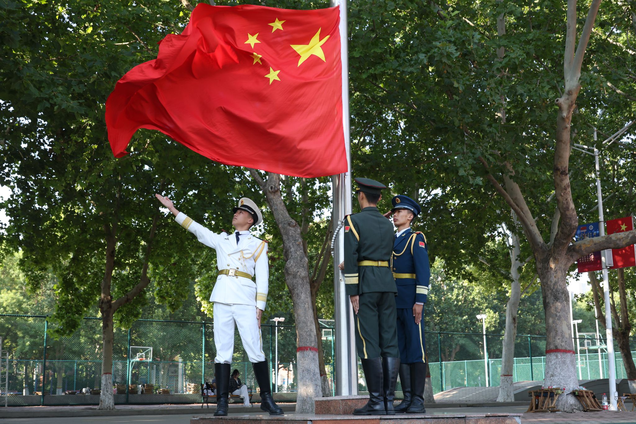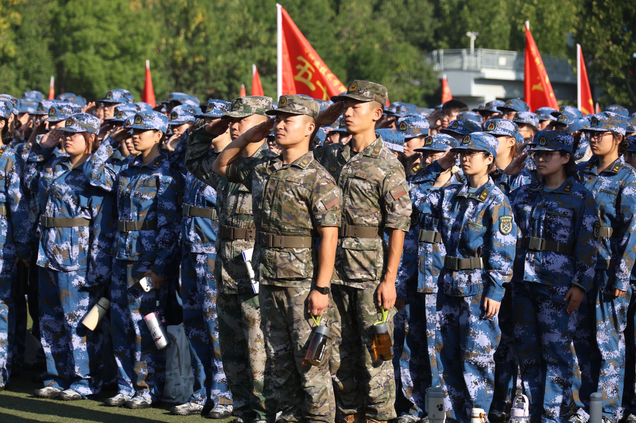 伴随着《中华人民共和国国歌》雄壮激昂的旋律,全体新生向国旗敬礼,军训动员大会正式拉开帷幕。