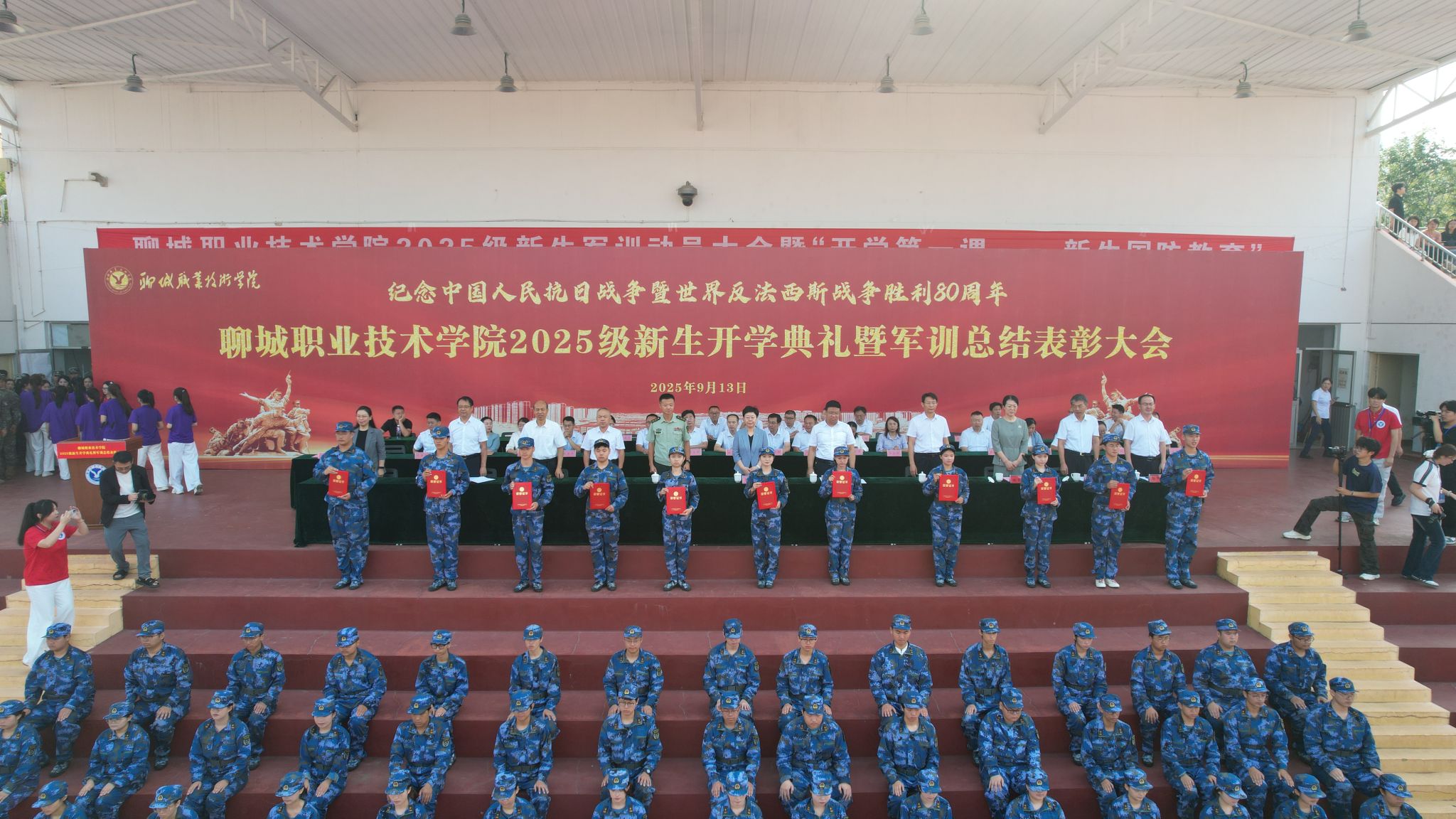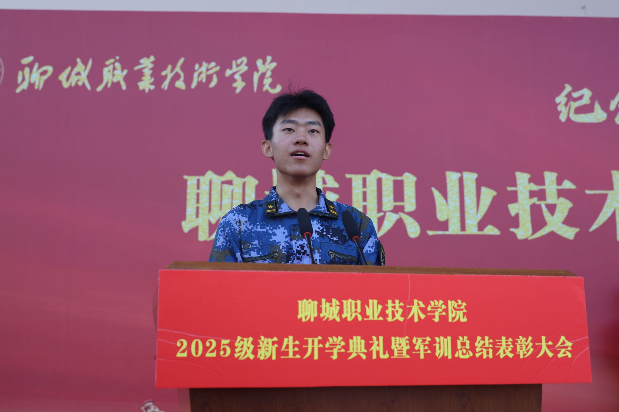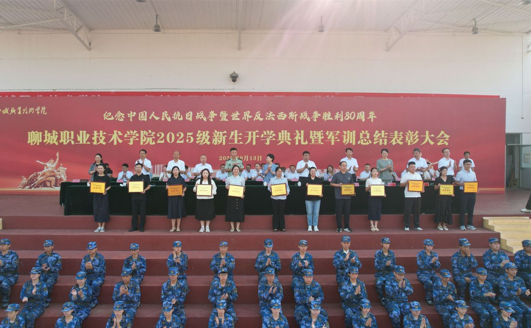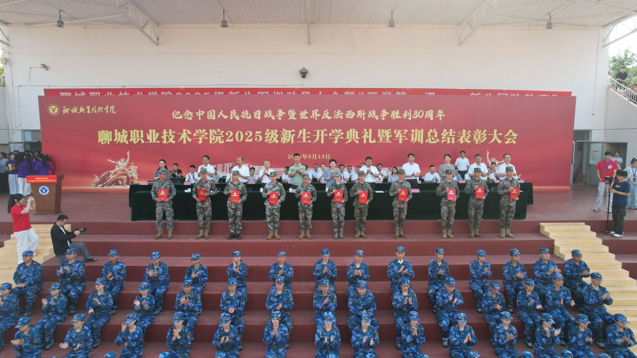 学校党委委员、副院长李继峰宣读了《聊城职业技术学院关于表彰2025级新生军训工作先进集体和先进个人的决定》。5个二级学院、12支“军歌比赛优秀连队”、12支连队“队列训练先进连队”、50名教官、980名同学获得表彰。