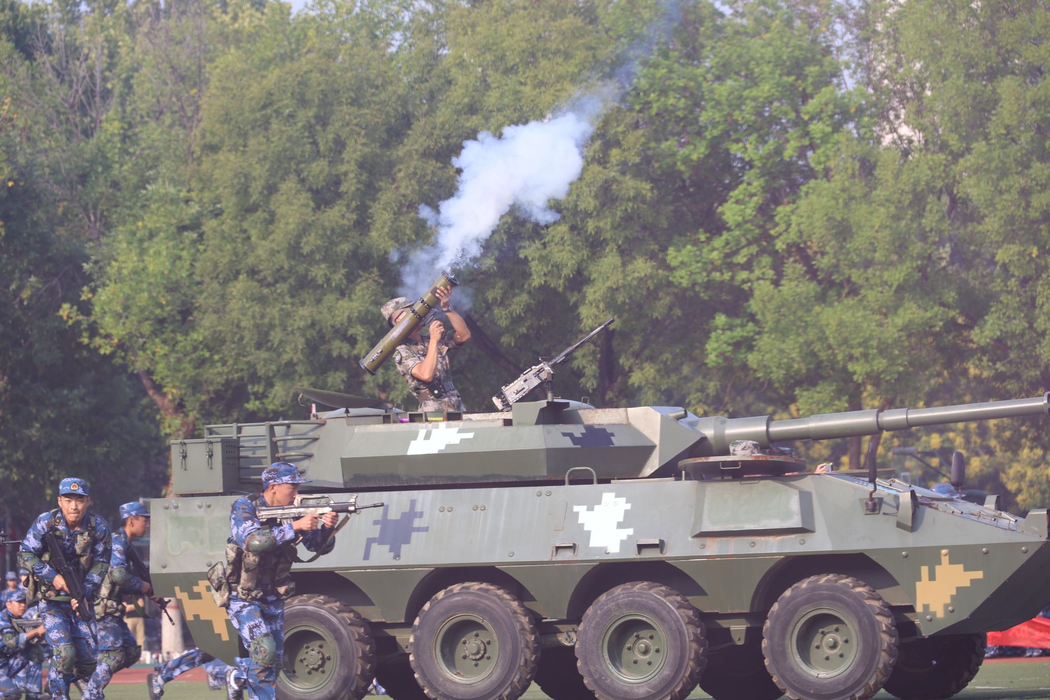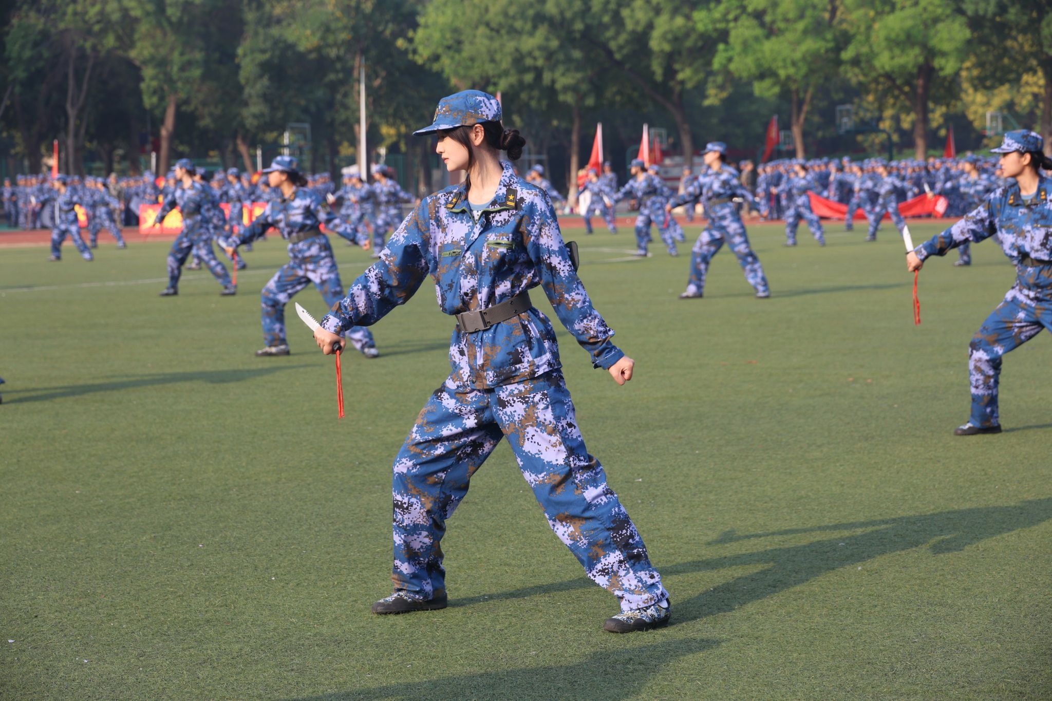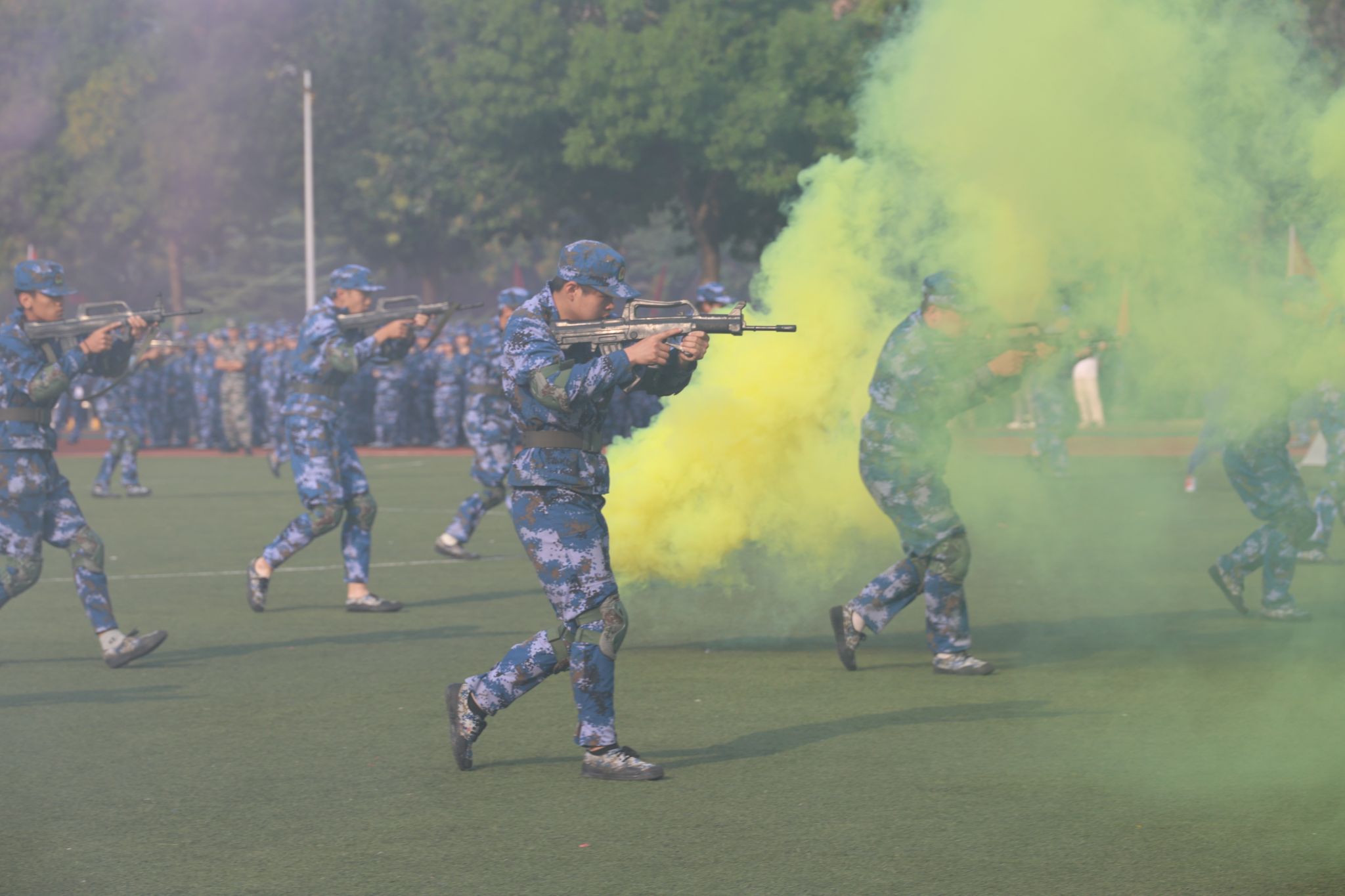 军训成果展示环节,2025级新生献上了精彩的旗语、匕首操、擒敌拳、刺杀棍、战术展示等表演。军训场上,狼烟弥漫,彩旗翻飞,同学们或低姿匍匐,或屈膝缓冲,在摸爬滚打中燃烧不屈的斗志,精彩表演赢得阵阵掌声。
