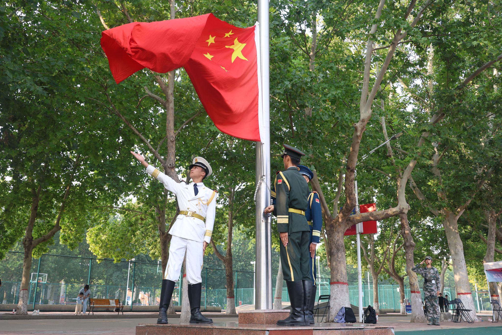 伴随着雄壮的《义勇军进行曲》,五星红旗冉冉升起,全体师生肃立敬礼,2025级新生开学典礼正式拉开序幕。