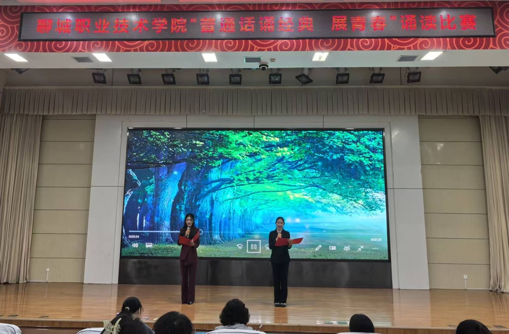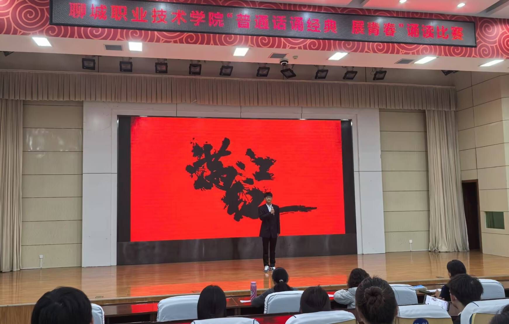 为铸牢中华民族共同体意识,推广国家通用语言文字应用,提升学生普通话水平与经典诵读能力,展现青春学子的文化素养与精神风貌,9月23日,聊城职业技术学院“普通话诵经典・展青春”诵读比赛圆满落幕。