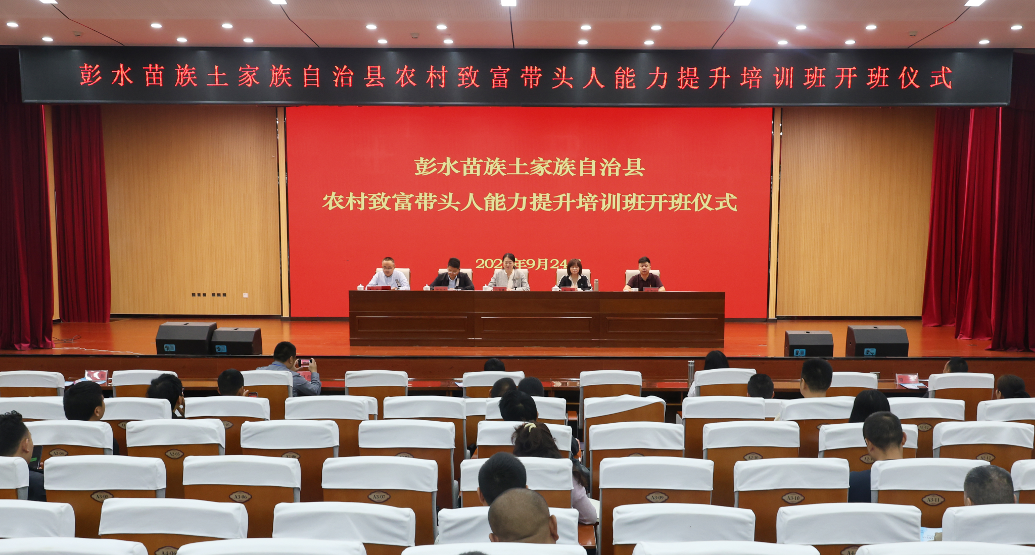 为加强东西部协作,为铸牢中华民族共同体意识作出聊职贡献,9月24日,彭水苗族土家族自治县农业致富带头人能力提升培训班开班仪式在聊城职业技术学院举行。彭水苗族土家族自治县职业教育中心副校长、社区教育学院副院长吴敏, 彭水苗族土家族自治县农业农村委员会副主任刘洪磊, 彭水苗族土家族自治县职业教育中心培训部主任何俊池,党委委员、副院长刘雪巍出席活动。