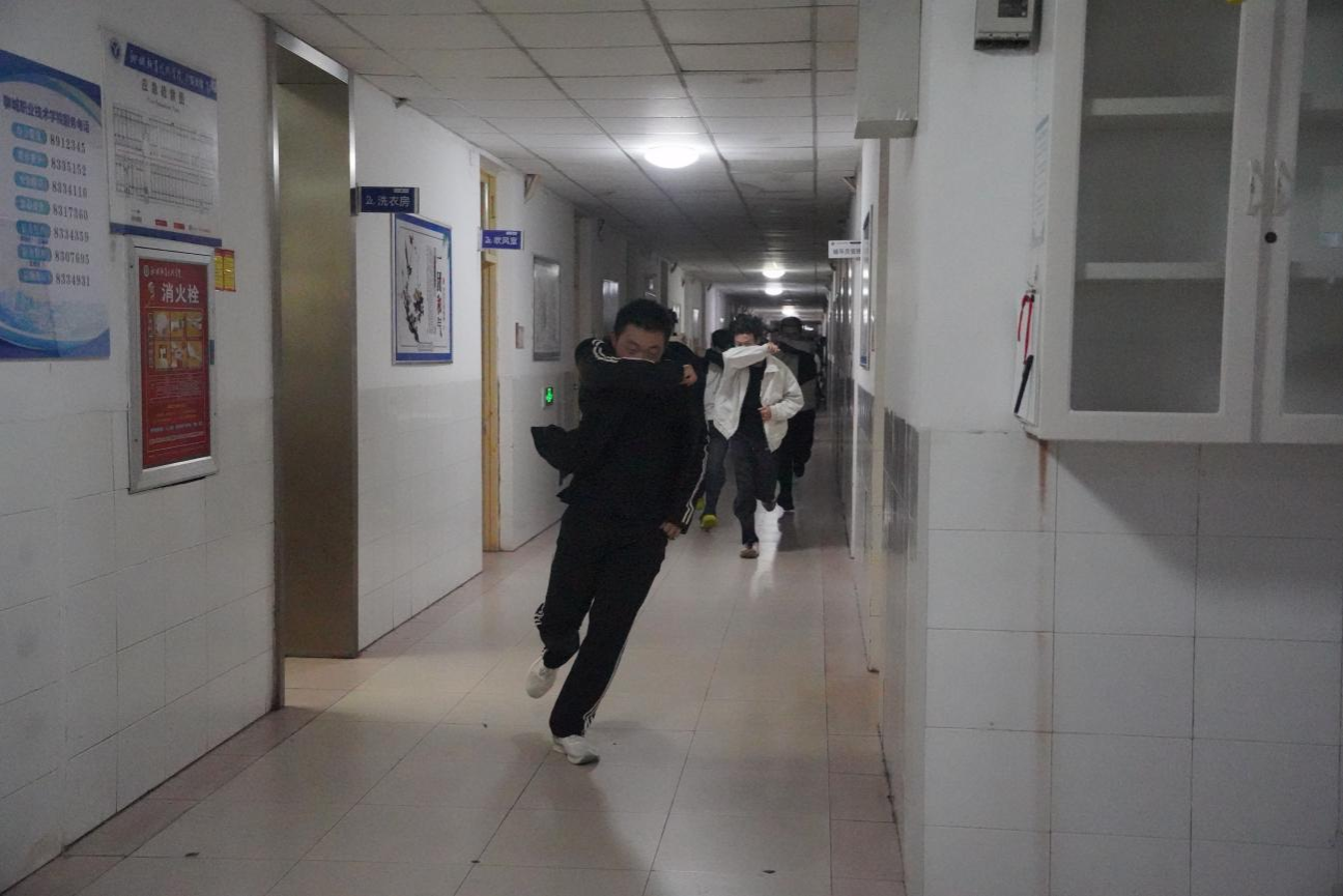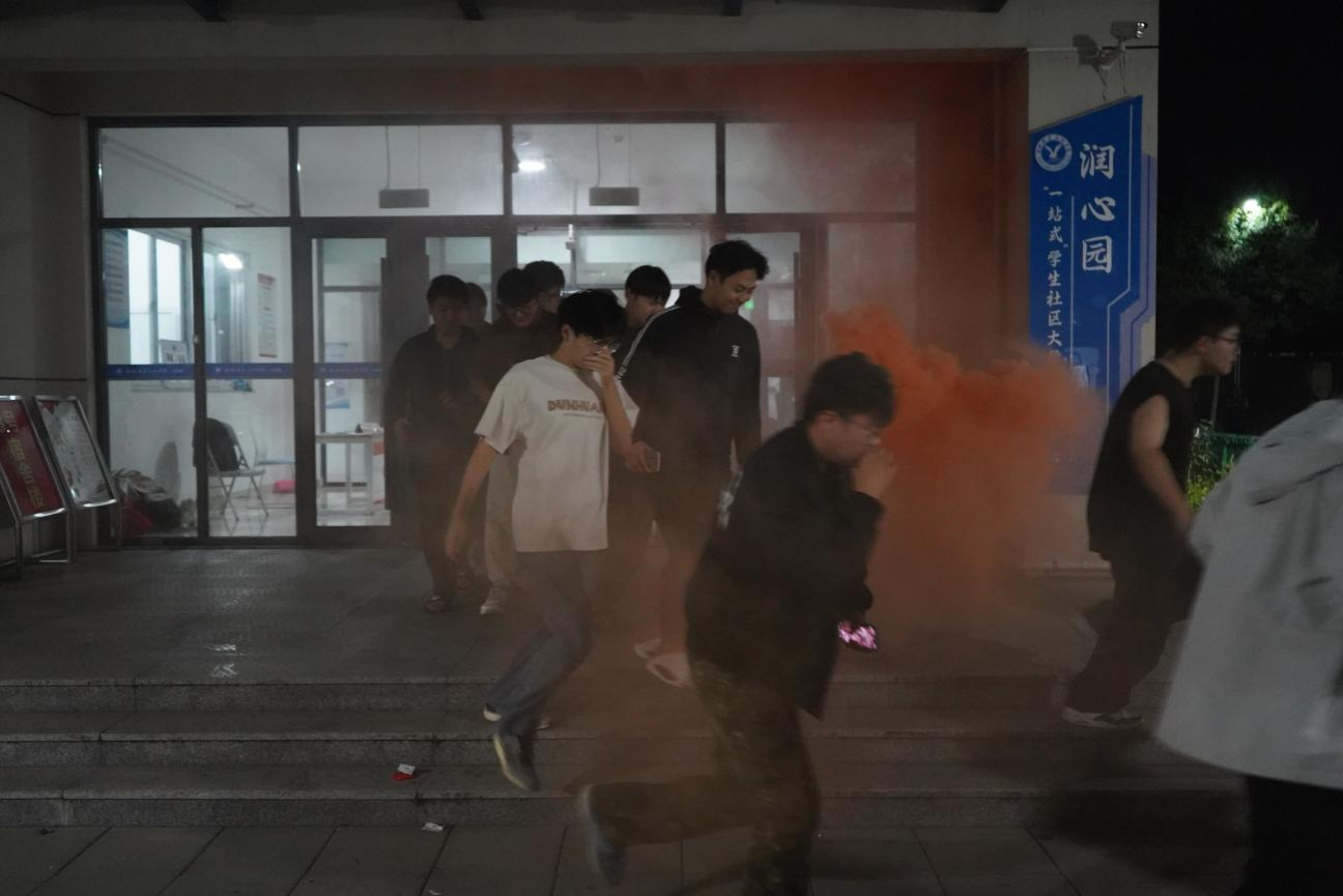 在演练过程中,学生社区依托“网格化四级联动”管理模式,充分发挥学生干部和寝室长的骨干作用。每栋公寓楼设立疏散引导员,佩戴醒目标识,负责指引路线、维持秩序、协助同学撤离。各楼栋同步启动广播提示与应急照明,确保信息传递及时、疏散通道畅通。