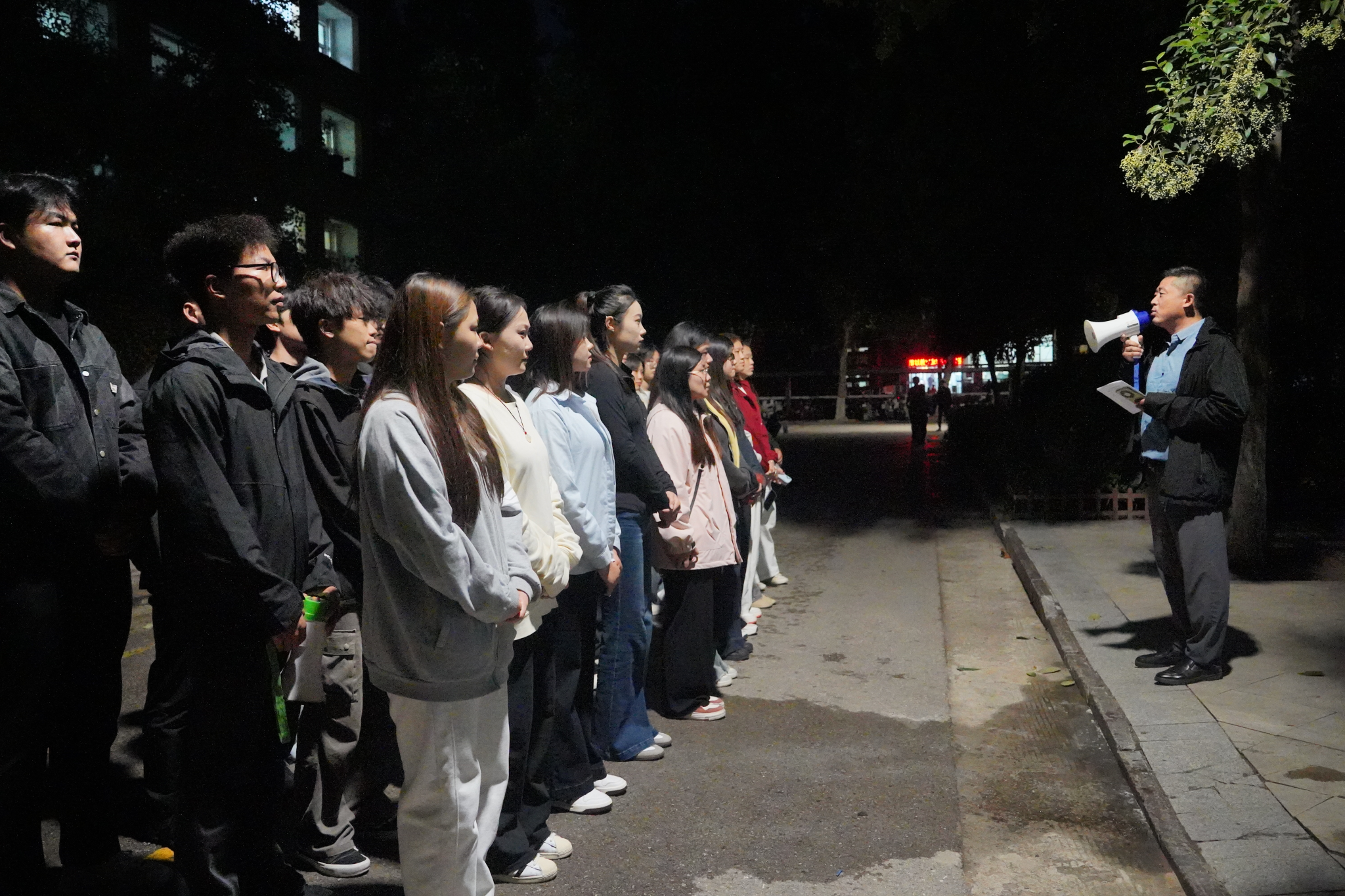 演练模拟夜间突发火灾,公寓楼道迅速弥漫烟雾,警报声骤然响起。管理员第一时间切断电源并开启应急照明,学生在引导员带领下,用湿毛巾捂住口鼻,低姿沿墙快速有序撤离。短短2分45秒,所有人员安全到达指定集合点。演练结束后,现场指挥组对撤离速度、秩序及安全要点掌握情况进行点评,并指出个别楼栋疏散中出现的短暂拥堵问题,提出优化建议。