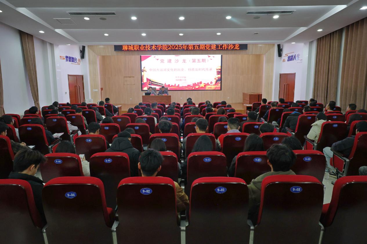 11月12日,聊城职业技术学院举办2025年第五期党建工作沙龙。邀请聊城市委党校文史教研室副主任、副教授韩晓辉作专题讲座。党委委员、组织部部长孙华祥出席,各党总支副书记、教工党支部书记、学生党支部书记、党务工作者、师生代表等100余人参加活动。