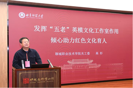 11月14日,鲁西南片区教育系统关工委2025年度工作会议在曲阜师范大学召开。省教育厅关工委常务副主任,省教育厅原副巡视员到会指导,鲁西南片区内各地市教育局关工委和各高校关工委的相关负责领导参加了会议。聊城职业技术学院原党委委员、副院长,校关工委常务副主任、“五老”英模文化工作室首席专家高杉参加此次会议,并作为聊城市代表作了“发挥‘五老’英模文化工作室作用 倾心助力红色文化育人”的主题发言。