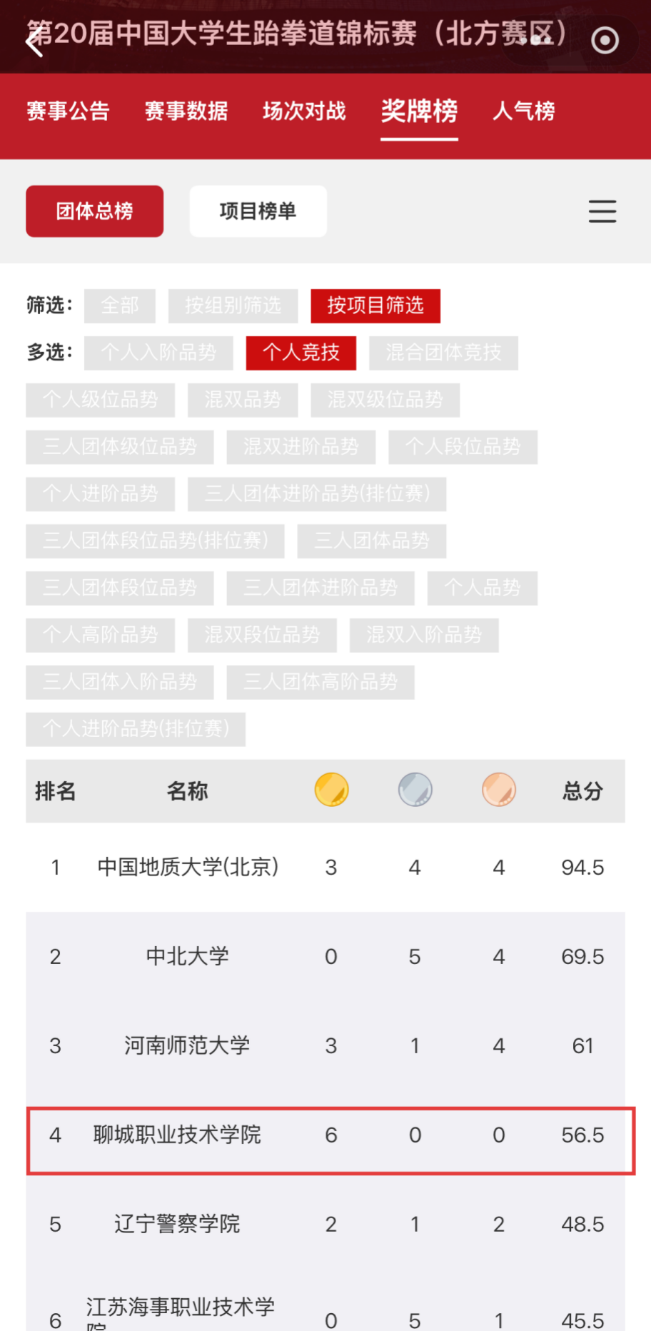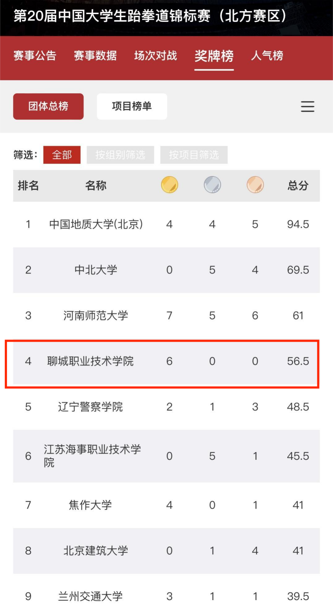 团体总成绩荣获第四名