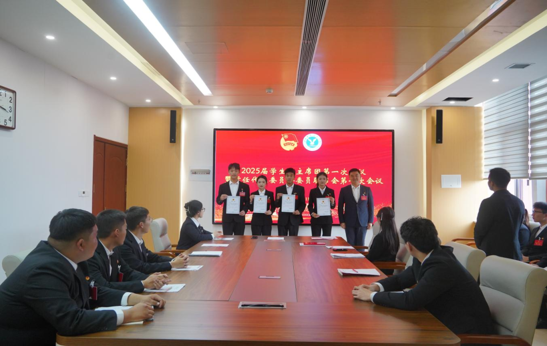 在随后召开的2025届学生会主席团第一次扩大会议暨学代会常任代表委员会第一次全体会议上,校团委负责同志为学生会主席团、学代会常任代表委员会委员颁发了聘书,学生会聘任学校团委书记担任2025届学生会秘书长。