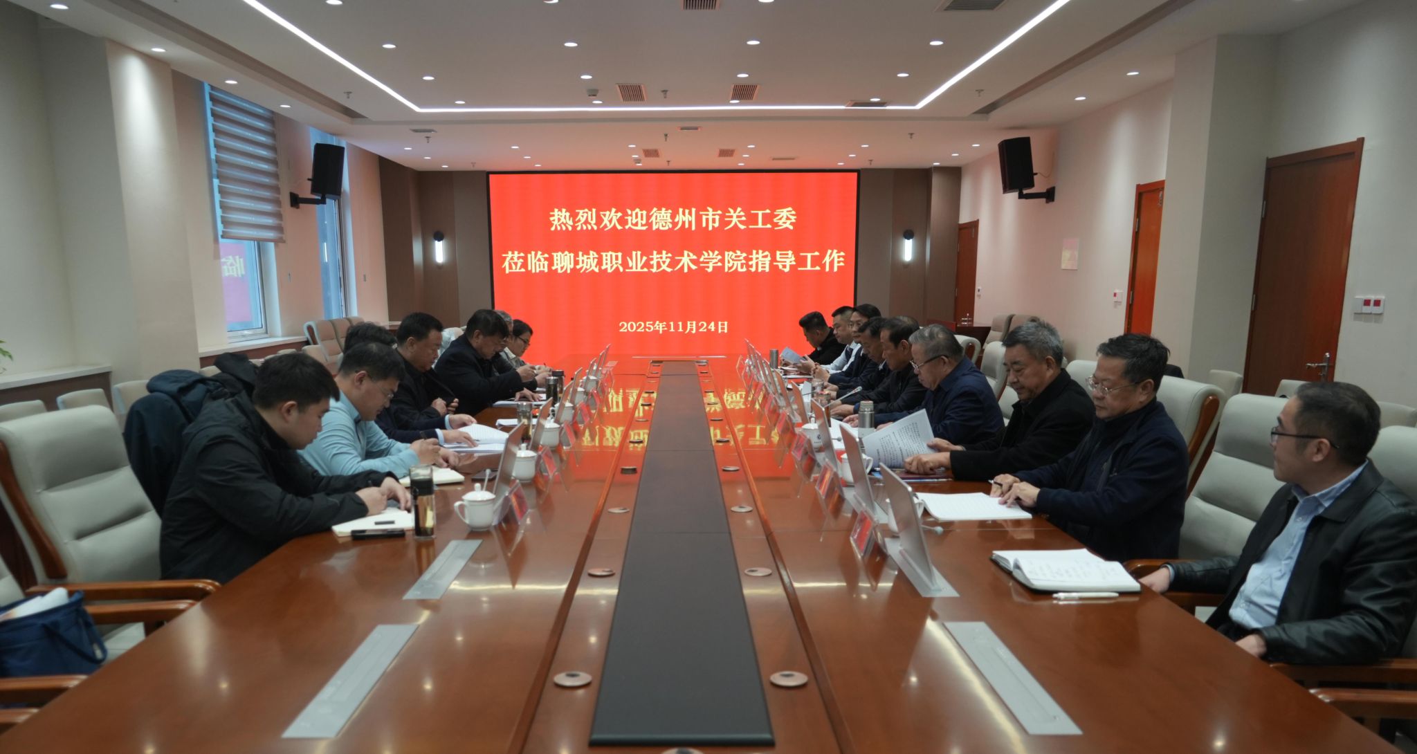 11月24日,德州市关工委主任翟长生一行来聊城职业技术学院调研交流关心下一代工作。聊城市关工委常务副主任刘强,副主任兼秘书长李友渔,副主任张连臣,组织工作部部长刘德勇陪同考察。党委委员、副院长李继峰,学校关工委常务副主任高杉参加活动。