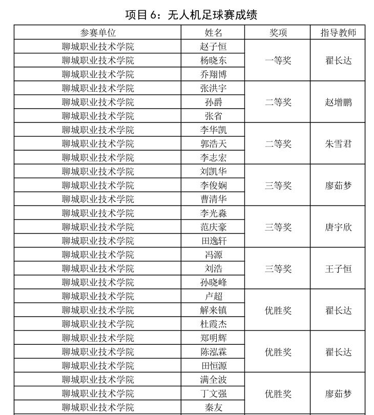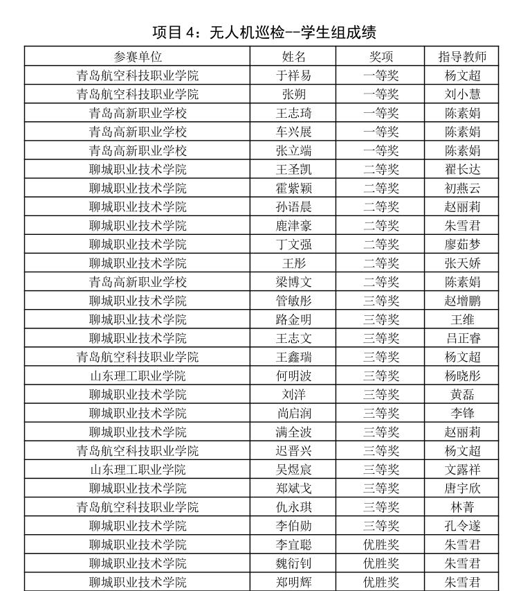 近日,2025年山东省“技能兴鲁”职业技能大赛无人机驾驶员职业技能竞赛公布获奖名单,聊城职业技术学院师生凭借扎实的专业功底、精湛的实操技能和顽强的拼搏精神,荣获精神文明奖,一举斩获97个奖项,其中一等奖8项,二等奖16项,三等奖24项,优胜奖49项,涵盖学生组、职工组多个竞赛项目,获奖数量与质量均位居全省同类院校前列,充分彰显了我校无人机类专业人才培养的过硬实力。