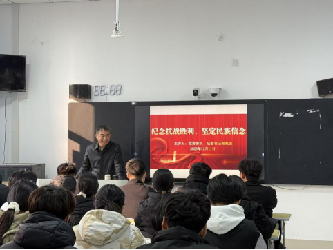 结合应急管理专业特色,崔兆强解读了抗战精神的时代价值。他指出,“天下兴亡、匹夫有责的爱国情怀”“不畏强暴、血战到底的英雄气概”等抗战精神内核,与应急管理工作要求的责任担当、牺牲奉献高度契合,是当代青年必须汲取的精神养分。他勉励学生传承抗战精神,坚定“四个自信”,铸牢中华民族共同体意识,锤炼专业本领,把爱国情转化为报国行,在实现中华民族伟大复兴的光辉道路上贡献青春力量。