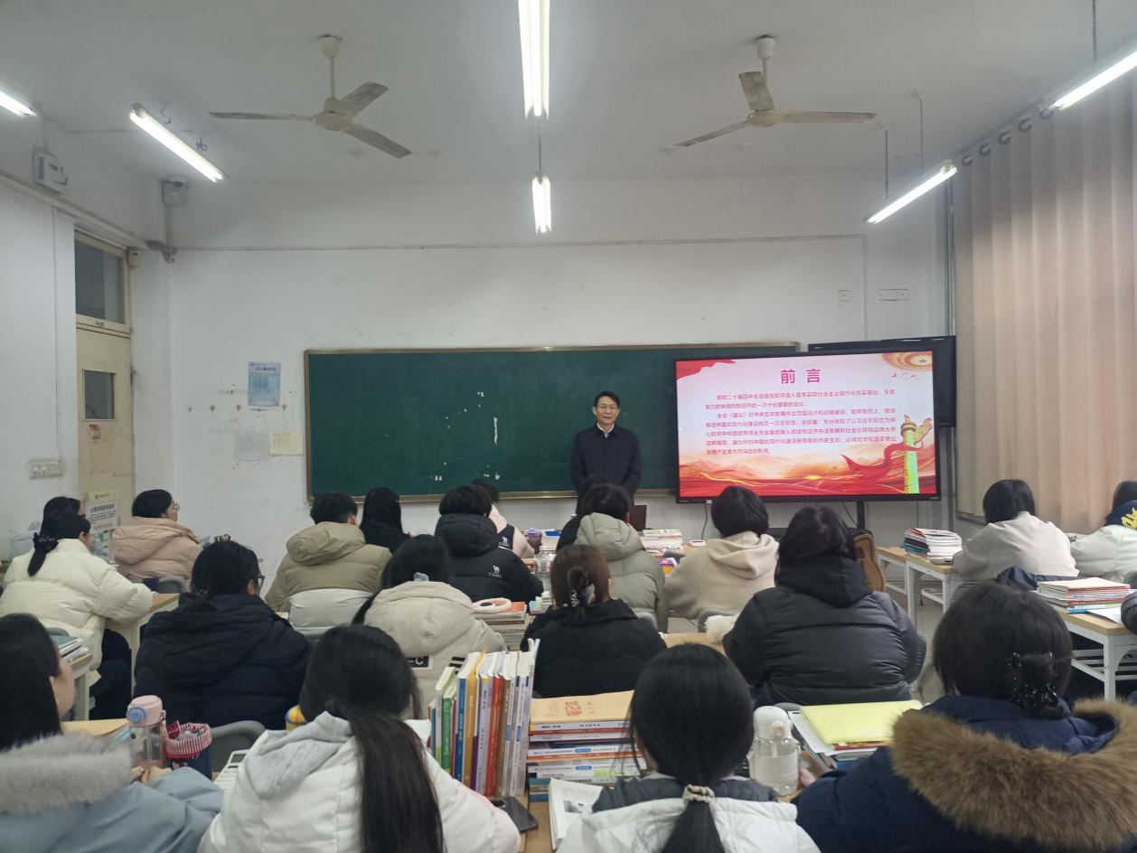 为深入学习贯彻党的二十届四中全会精神,推动理论学习进校园、进课堂、进头脑,切实筑牢青年学生理想信念根基,12月23日,党委委员、副院长李继峰围绕党的二十届四中全会精神为经贸学院学生讲授形势与政策课。