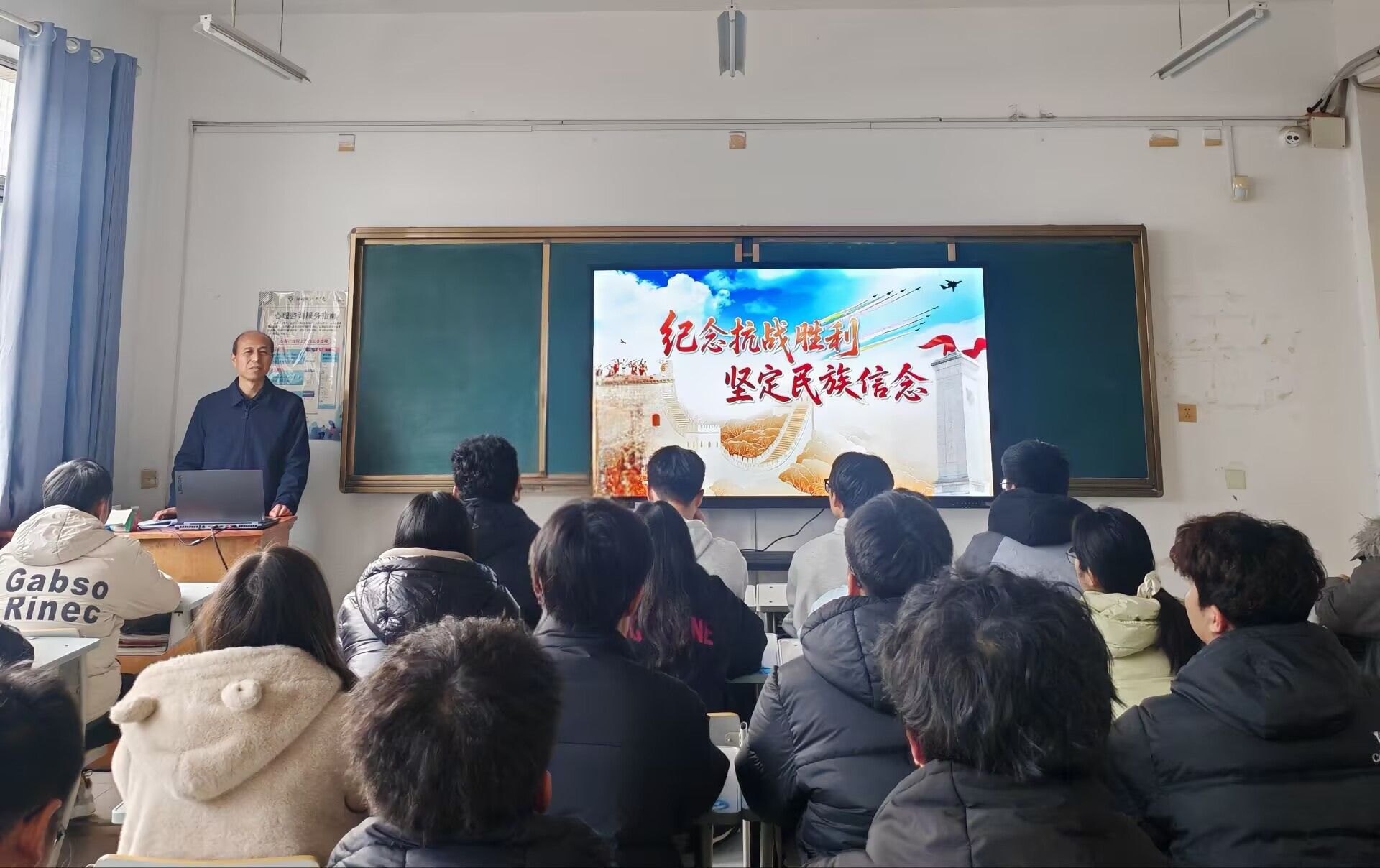 高绪斌以九三阅兵为切入点,带领师生重温那段山河破碎、浴血奋战的峥嵘岁月。他围绕“铭记历史,正义必胜”“珍爱和平,开创未来”等内容,结合详实的历史史料与鲜活的英雄事迹,深刻阐释了中国人民抗日战争胜利的重大意义与深远影响。他指出,十四年抗战,无数中华儿女抛头颅、洒热血,用血肉之躯筑起捍卫民族尊严的钢铁长城,这场胜利,是正义战胜邪恶、光明战胜黑暗的伟大胜利。他强调,伟大抗战精神是中国人民弥足珍贵的精神财富,是激励我们攻坚克难、奋勇前进的强大动力,希望同学们能从抗战精神中汲取力量,培养坚韧不拔的意志品质和勇于担当的责任意识,以实际行动践行爱国主义精神。