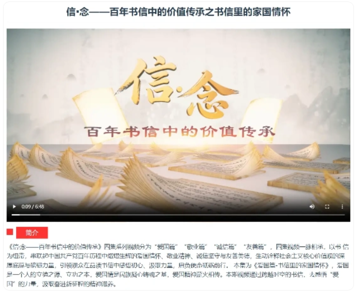 该作品依托2025年度山东省人文社科课题青年重点项目《英模文化赋能社会主义核心价值观大众化传播的实践路径研究》,聚焦百年书信中的家国情怀与精神传承,以生动鲜活的数字化叙事方式,将历史文献与价值阐释深度融合,深情展现了不同时代人物的理想信念与责任担当。作品通过深入挖掘书信背后的历史记忆与情感力量,有力弘扬了以爱国主义为核心的民族精神和以改革创新为核心的时代精神,是推动社会主义核心价值观深入人心、落地生根的生动实践。