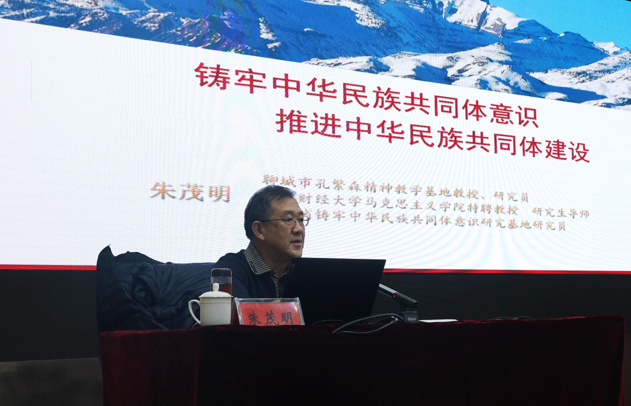 为深刻把握铸牢中华民族共同体意识的重大意义与时代内涵,12月25日,聊城职业技术学院举行铸牢中华民族共同体意识专题报告会。报告会特邀孔繁森精神教学基地教授、山东省铸牢中华民族共同体意识研究基地研究员朱茂明教授主讲。学校党委副书记、院长崔巍等党委班子成员参加报告会。报告会由党委副书记刘雪巍主持。