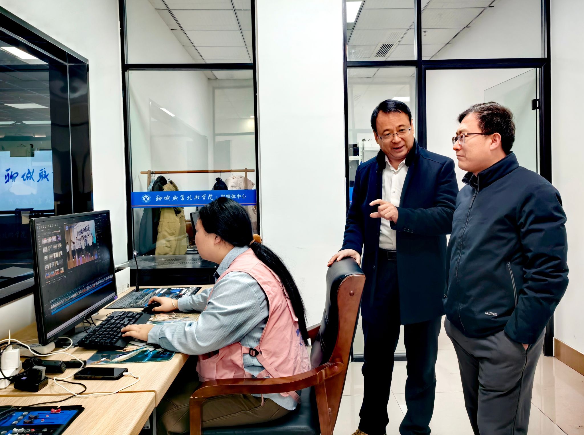 座谈会前,高昌洁一行还参观了聊城职业技术学院融媒体中心。