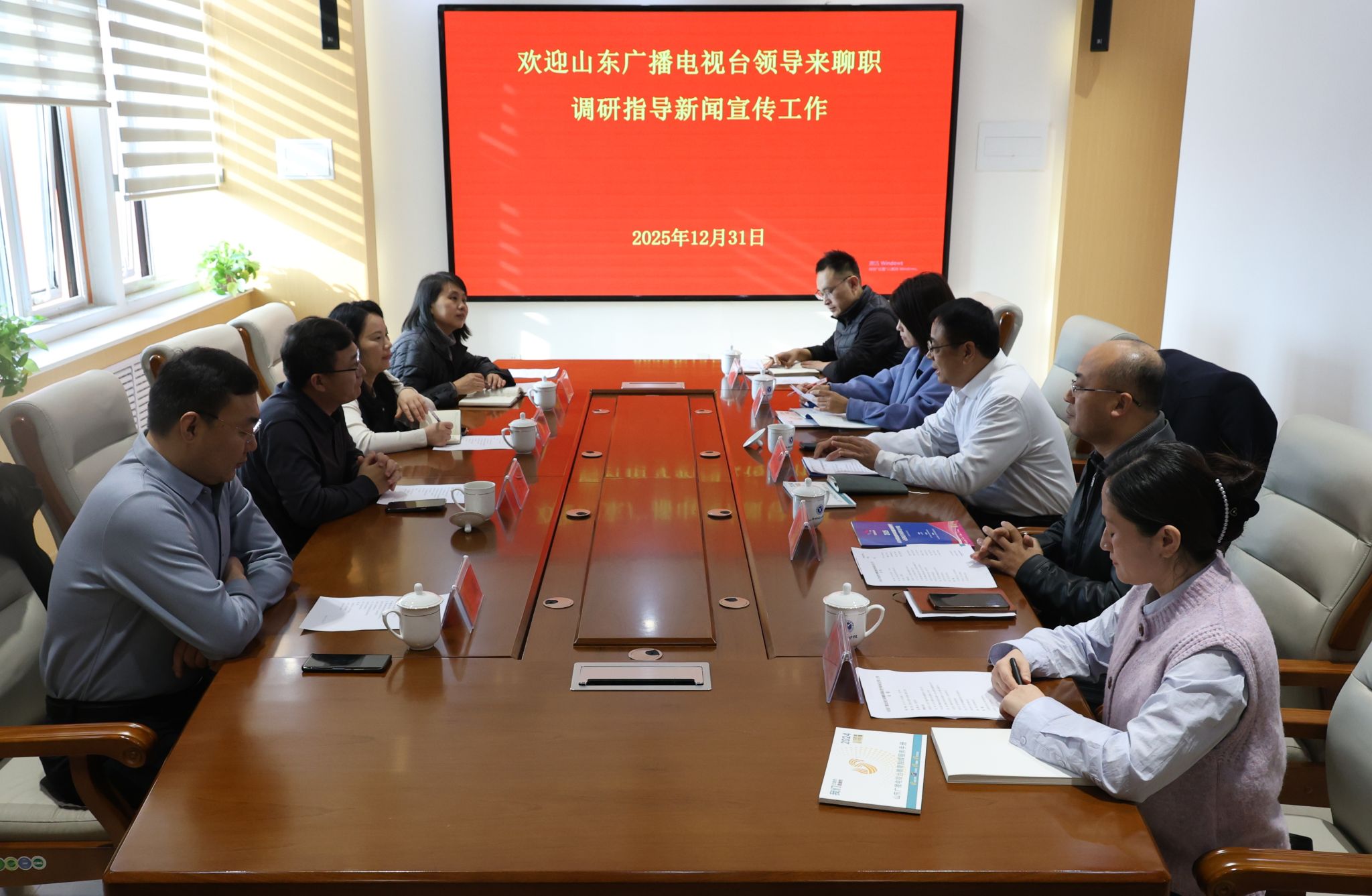 12月31日,山东广播电视台融媒体中心副主任高昌洁一行莅临聊城职业技术学院,专题调研指导学校新闻宣传工作。党委委员、统战部部长崔爱民参加活动,聊城市新闻传媒中心及学校宣传部相关人员参加交流。