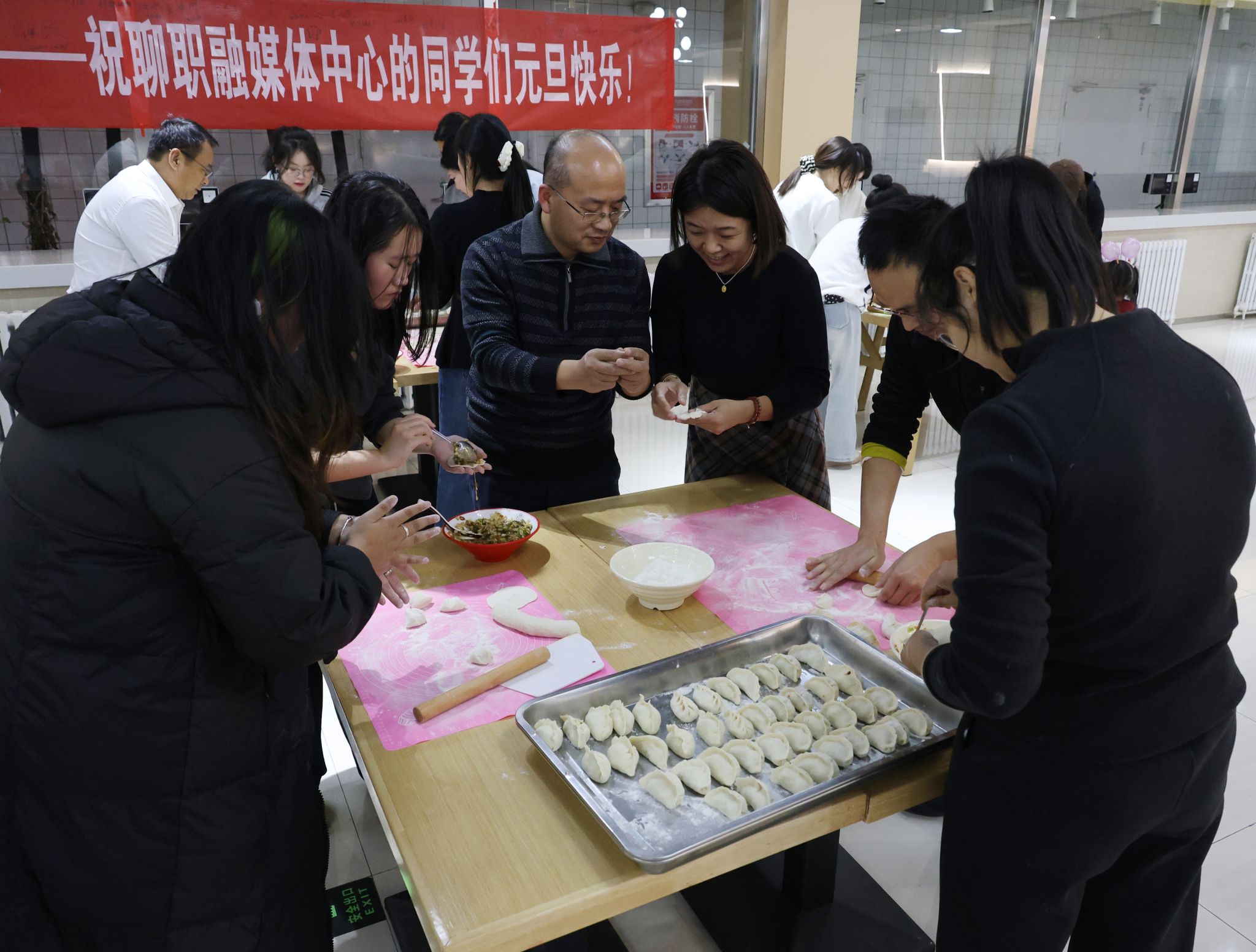 岁序更替,华章日新。12月31日晚,聊城职业技术学院党委宣传部组织留校学生开展包饺子庆祝新年活动。让大家在感受集体温暖与家的温情。党委委员、统战部部长崔爱民,与宣传部教师及部分留校学生同聚北校区餐厅,共叙师生情谊。