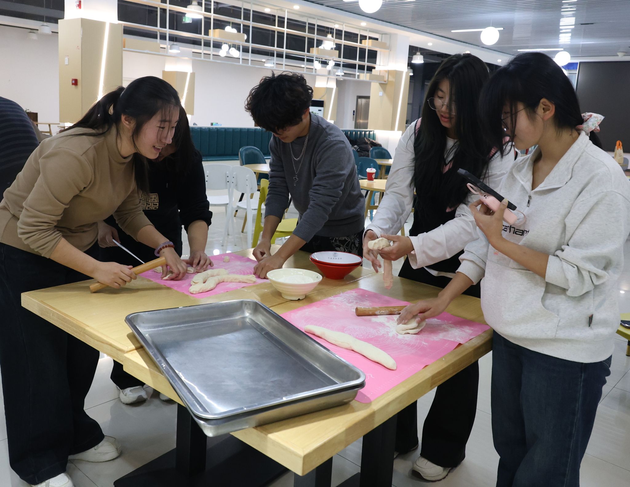 在师生齐心合力的共同努力下,饱满圆润的传统水饺、造型别致的创意饺子接连诞生,托盘上渐渐堆满了承载着祝福的“新年美味”。煮饺子的蒸汽袅袅升腾,氤氲出温馨祥和的氛围,师生围坐在一起,共话新年愿景,在味蕾的满足与轻松的交流中,拉近了彼此距离,凝聚了团队力量。