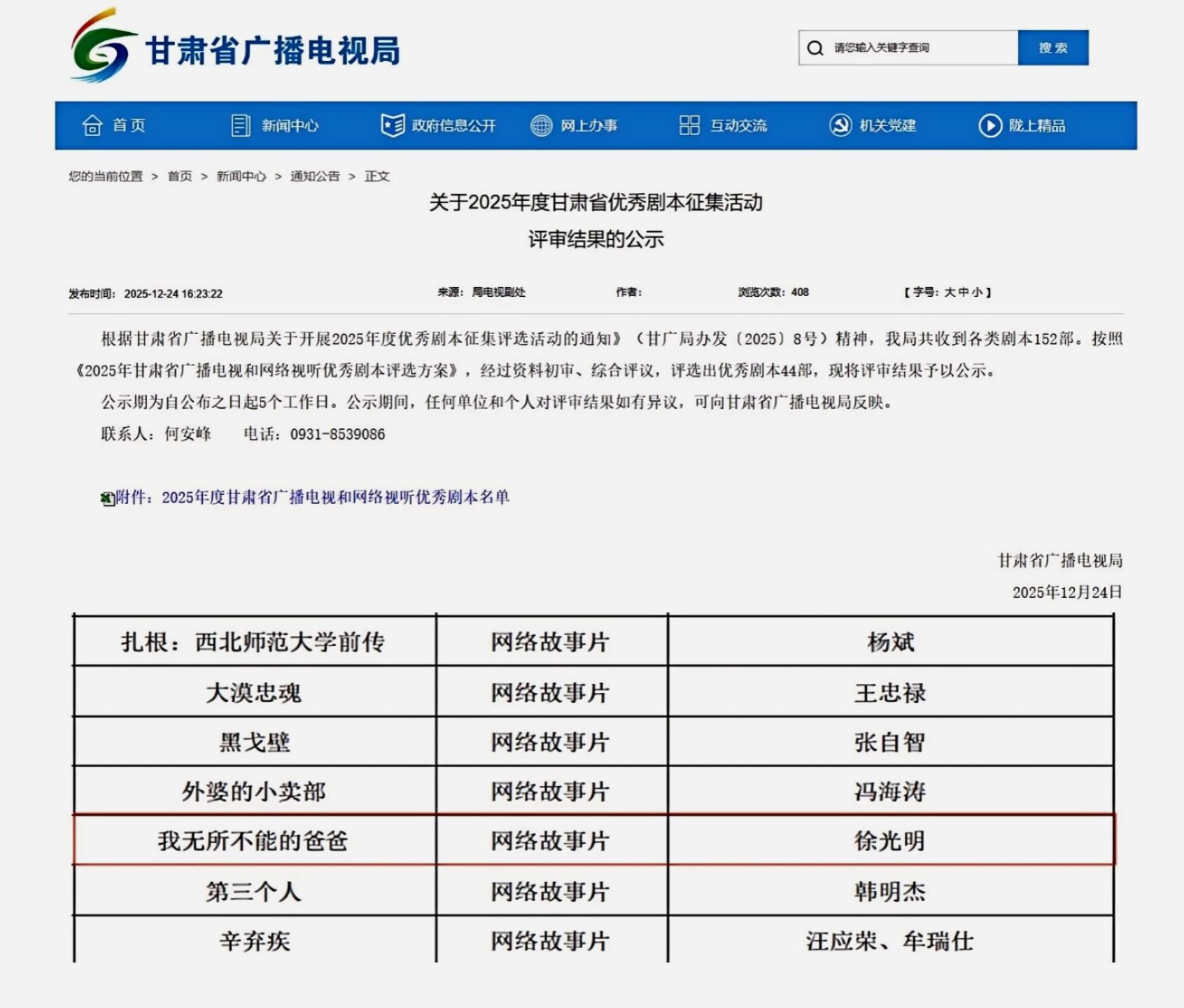 近日,甘肃省广播电视局公布2025年度甘肃省优秀剧本征集活动评审结果,经过初审及综合评议,44部影视文化作品被评为优秀电影剧本,聊城职业技术学院教师徐光明表现运河美食的影视文学作品入选。