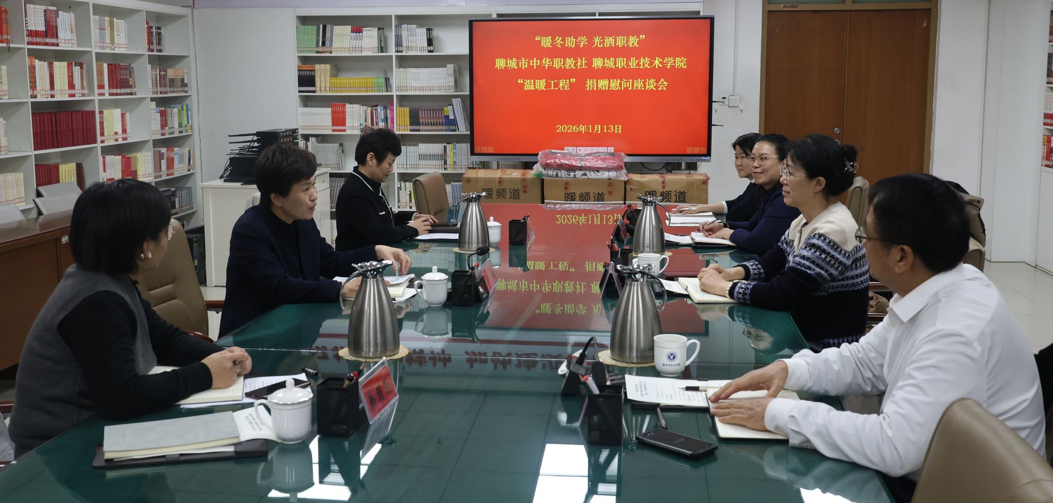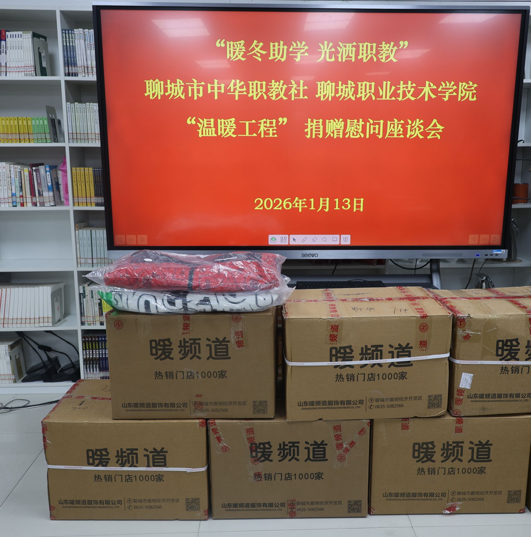 1月13日,“暖冬助学 光洒职教”——聊城市中华职社“温暖工程”捐赠慰问在聊城职业技术学院举行。市委统战部副部长、市侨联主席、市侨办主任赵敏,统战事务中心主任刘杰把价值一万余元的50件羽绒服送到学校,为聊职学子送上冬日里的温暖与关怀。聊城职业技术学院党委副书记刘雪巍,院领导崔爱民、卢萍出席活动。