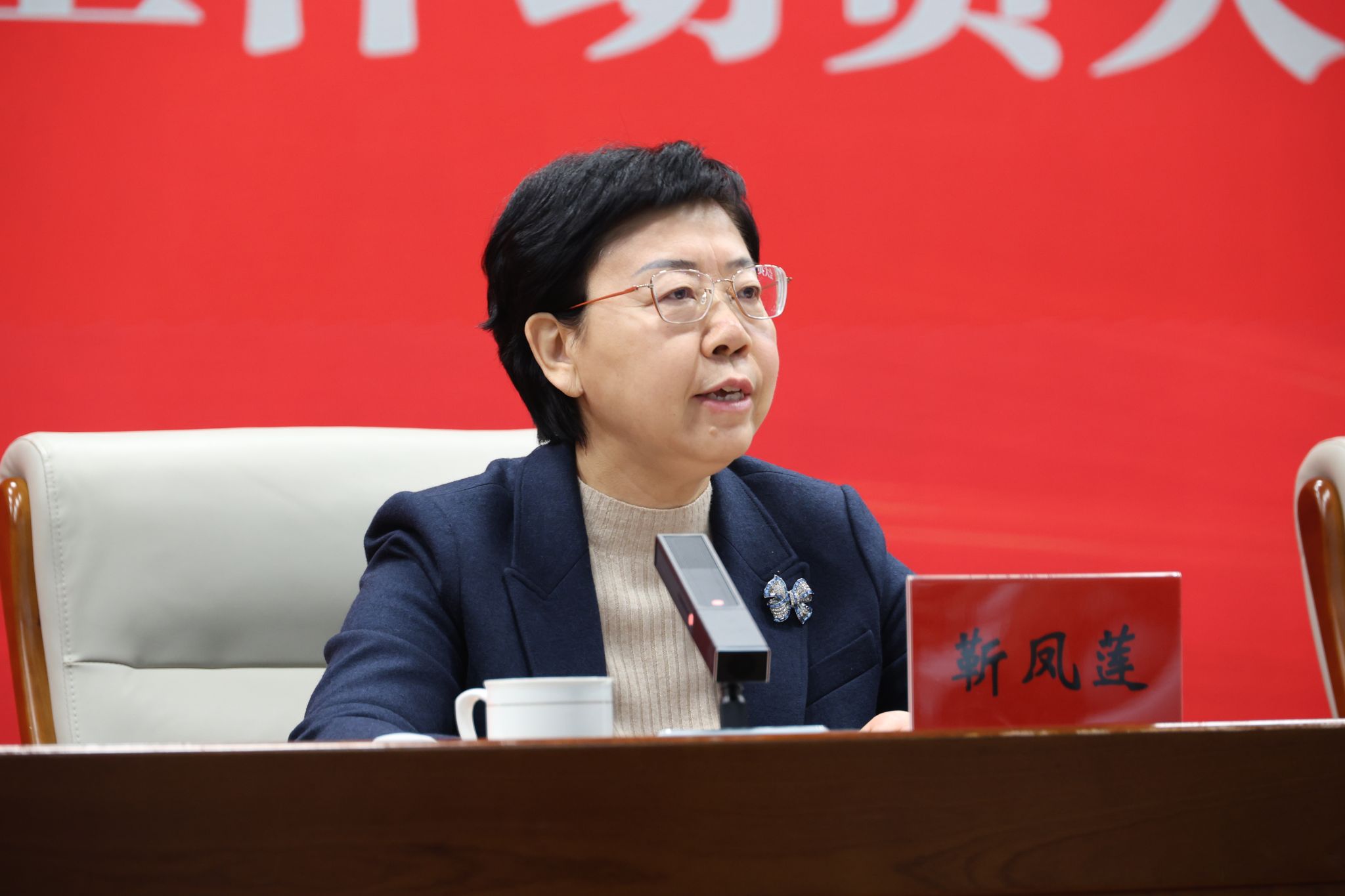 党委书记靳凤莲主持会议并作总结讲话,党委副书记、院长崔巍出席并讲话。学校全体领导班子成员出席,全体干部及教职工参加大会。