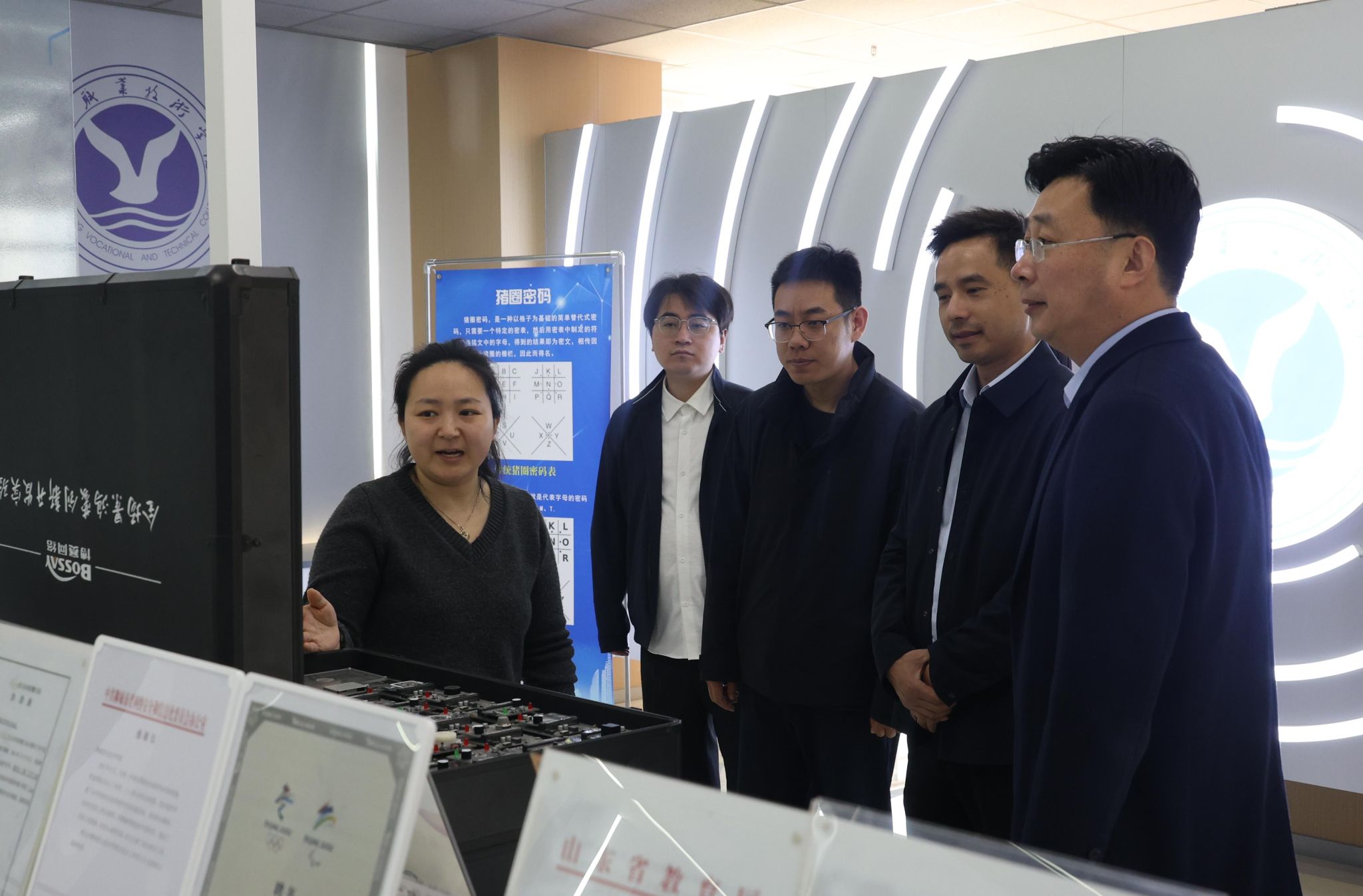 谢洪道一行实地参观了网络安全公共实训基地,详细了解我校在网络安全人才培养、技术研发、社会服务等方面的建设成果。