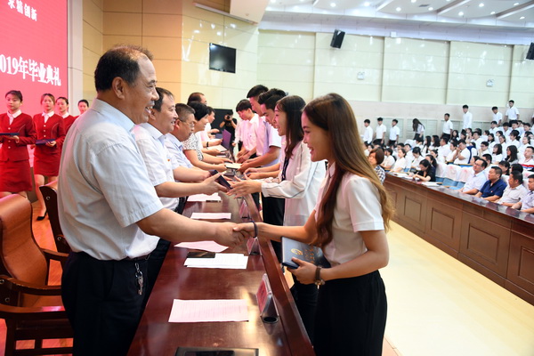 学校领导班子全体为毕业生代表颁发了毕业证书。