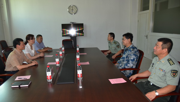 在聊城军分区,徐龙海向军分区政委郝爱军等领导介绍了学校开展的退役士兵免费培训项目及学校响应国家号召招收退役士兵入校就读专科学历的情况,并表示愿意派出精干力量为军分区的电工、烹饪等技能培训提供帮助。