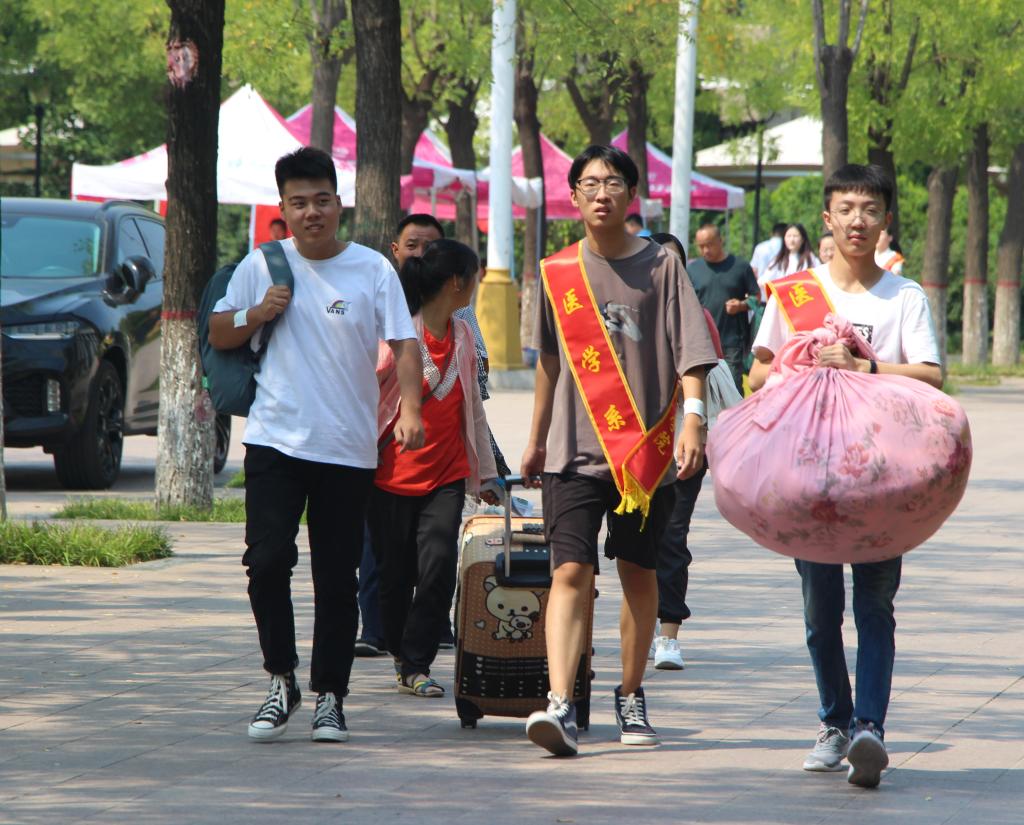 学校专门在火车站、长途汽车站设立了迎新站点,安排了舒适的大巴车,不间断发送班车迎接新生、安排家长免费乘车。伴着明媚的秋光,新生们陆续前来报到,迎新工作有条不紊,现场秩序井然。
